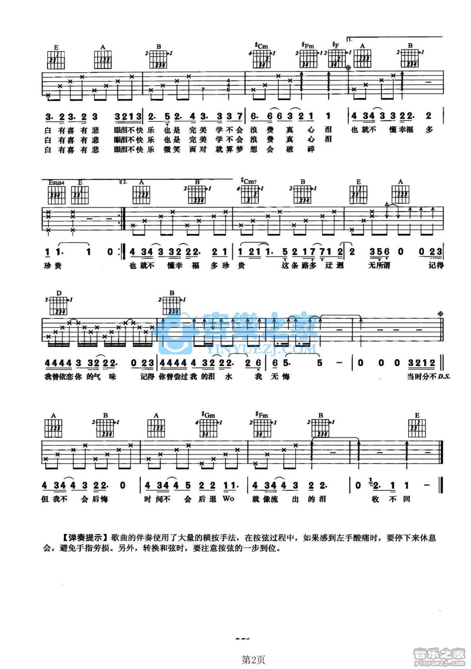曲谱介绍: E调版泳儿《眼泪不快乐》吉他弹唱六线谱