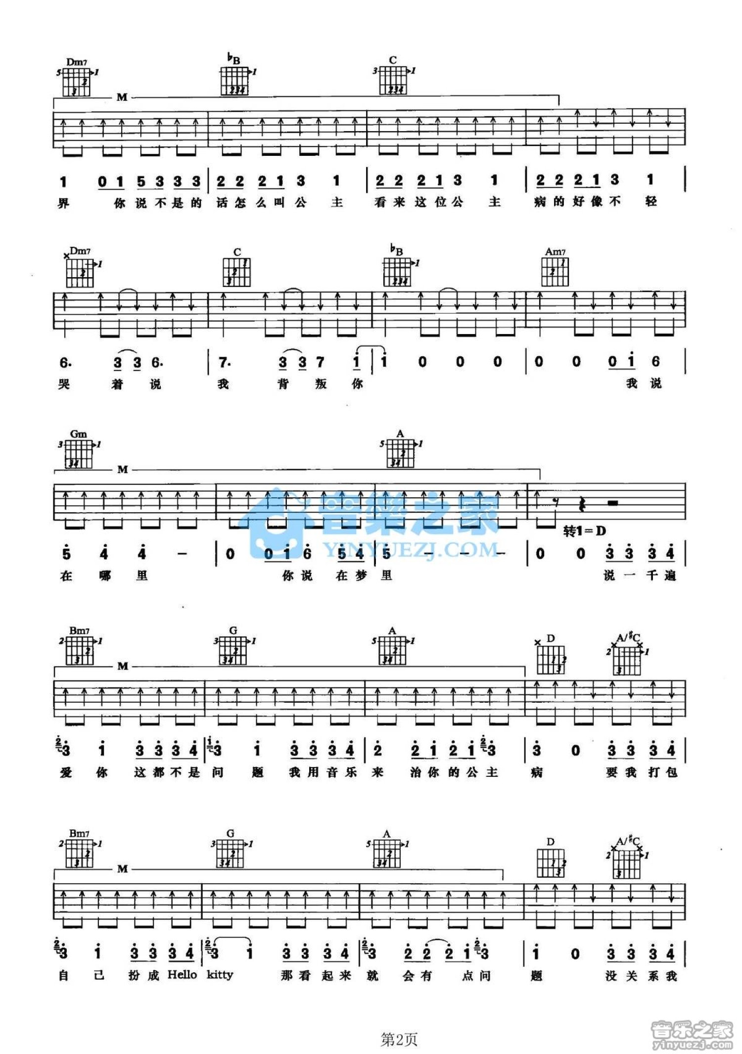 当前位置:琴谱网>吉他弹唱>公主病