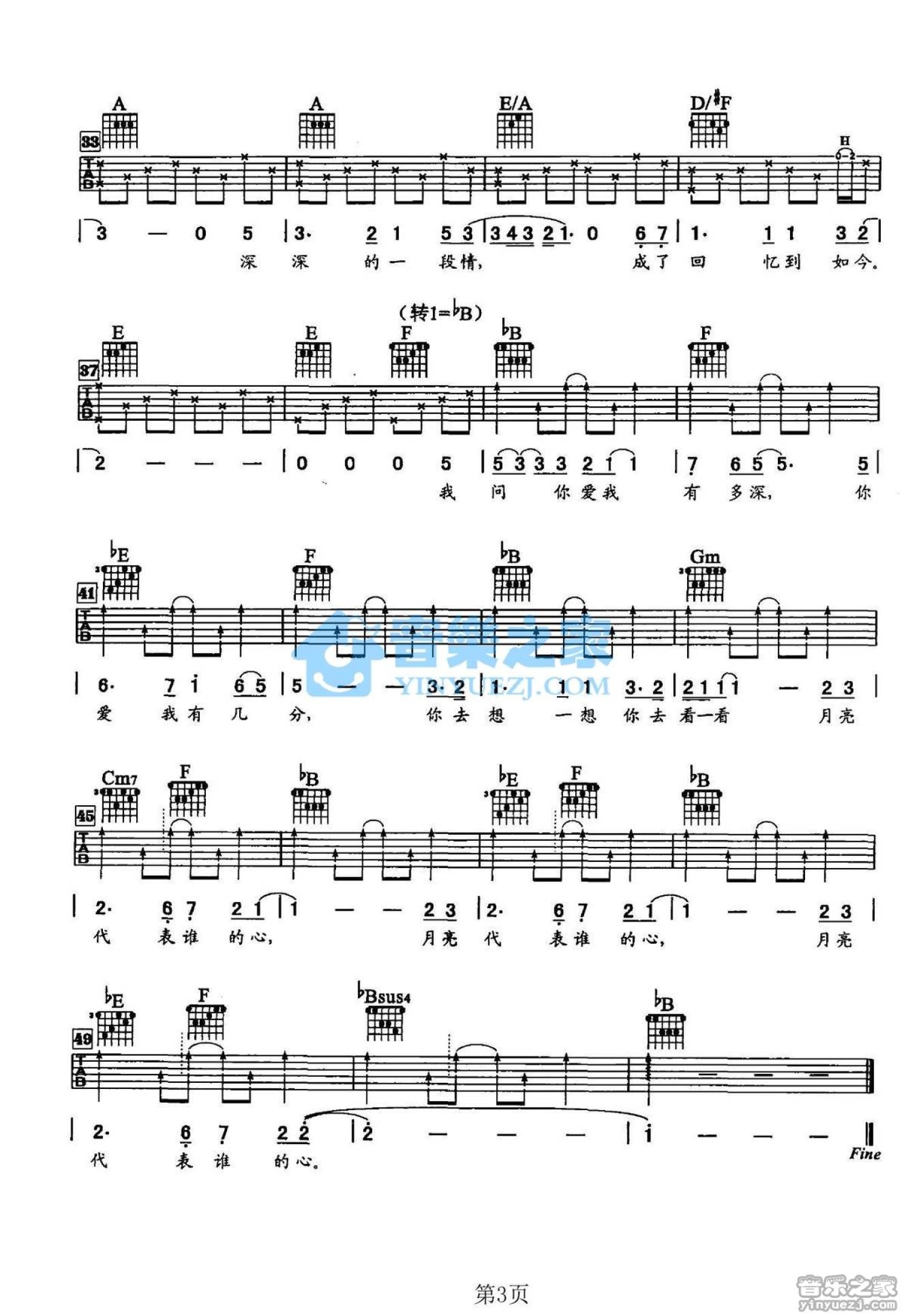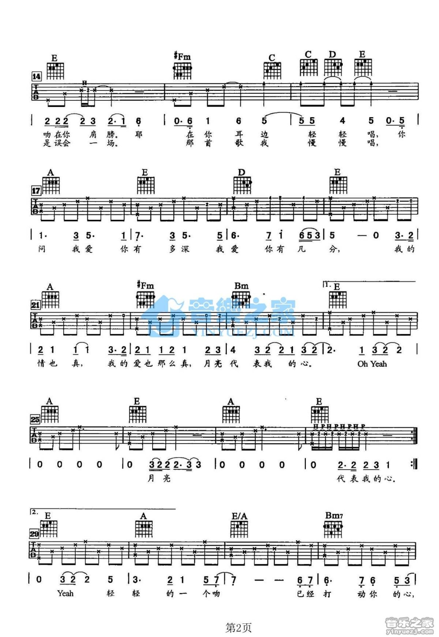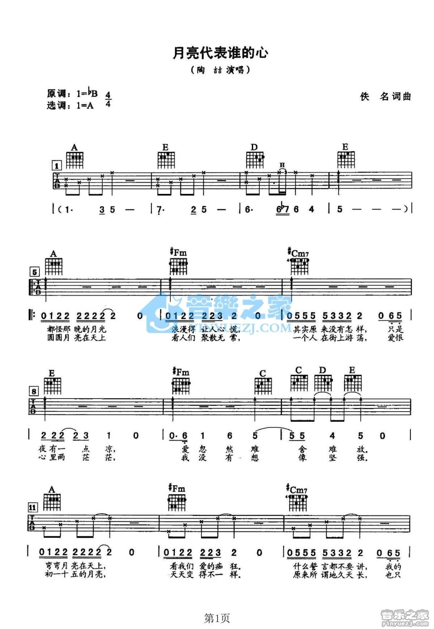 当前位置:琴谱网>吉他弹唱>月亮代表谁的心