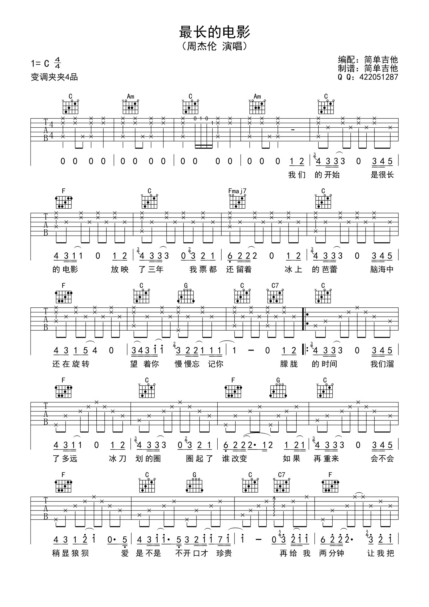 • 最长的电影吉他谱 - 周杰伦 - C调吉他弹唱谱第1张