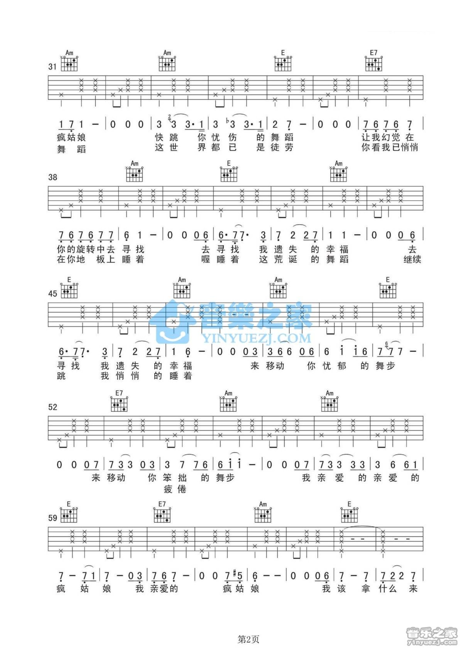 当前位置:琴谱网>吉他弹唱>疯姑娘
