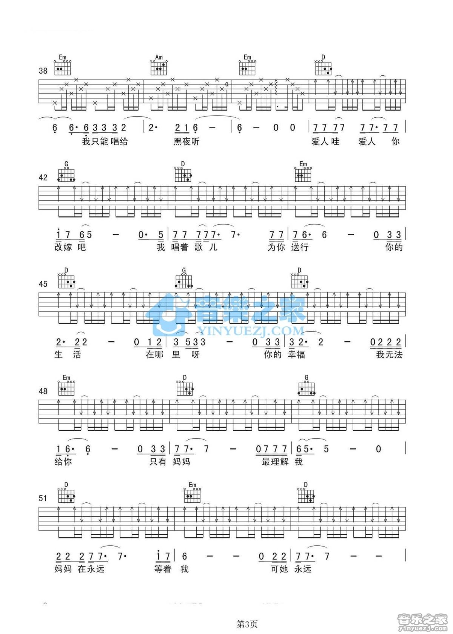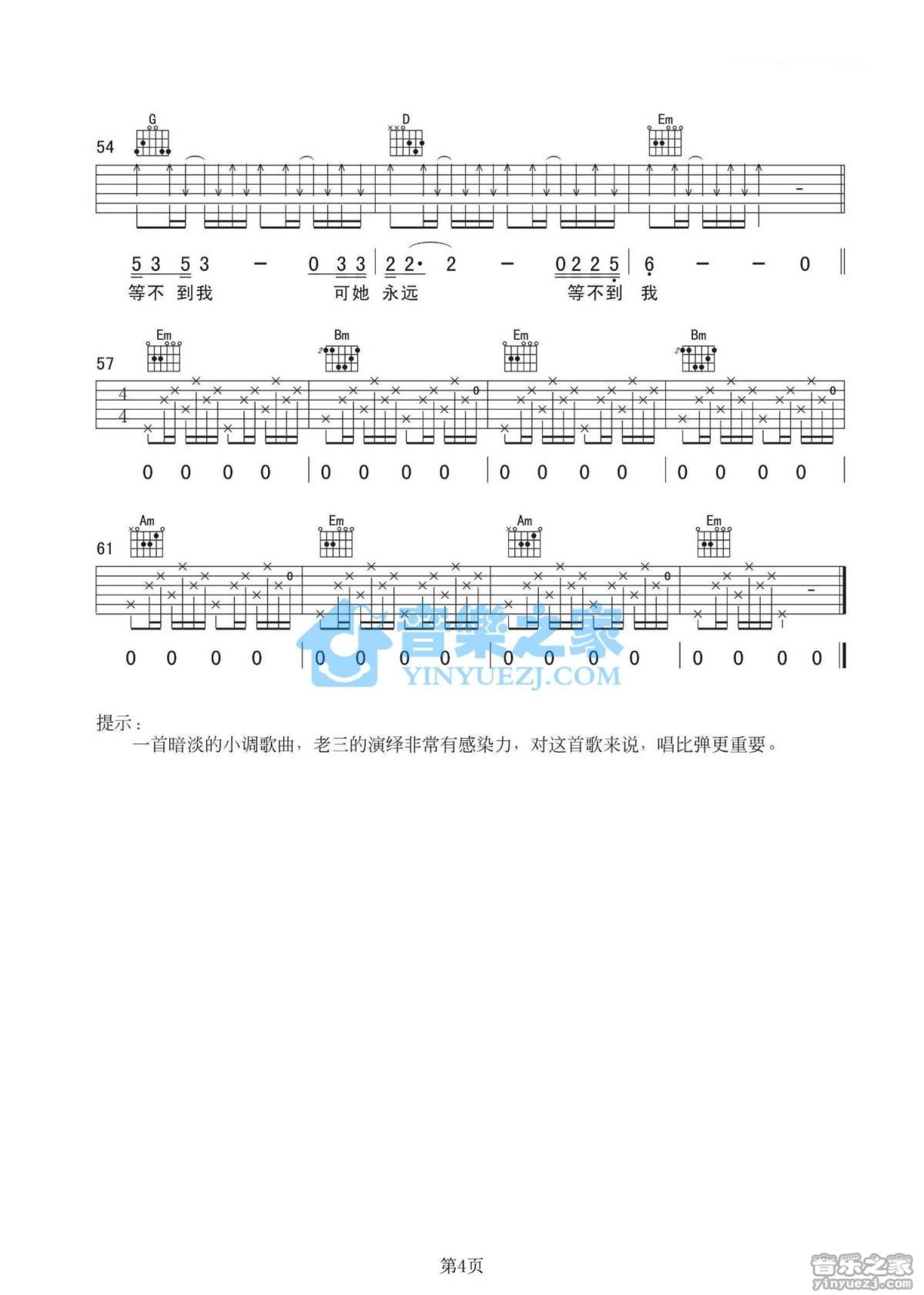 曲谱介绍: 丽江酒吧G调原版老三《出走》吉他弹唱六线谱