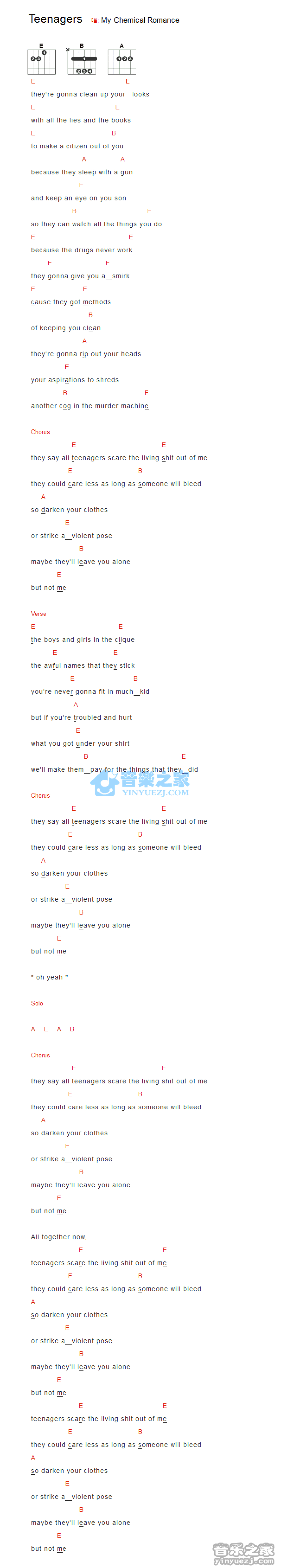 曲谱介绍: MyChemicalRomance《Teenagers》吉他和弦弹唱谱
