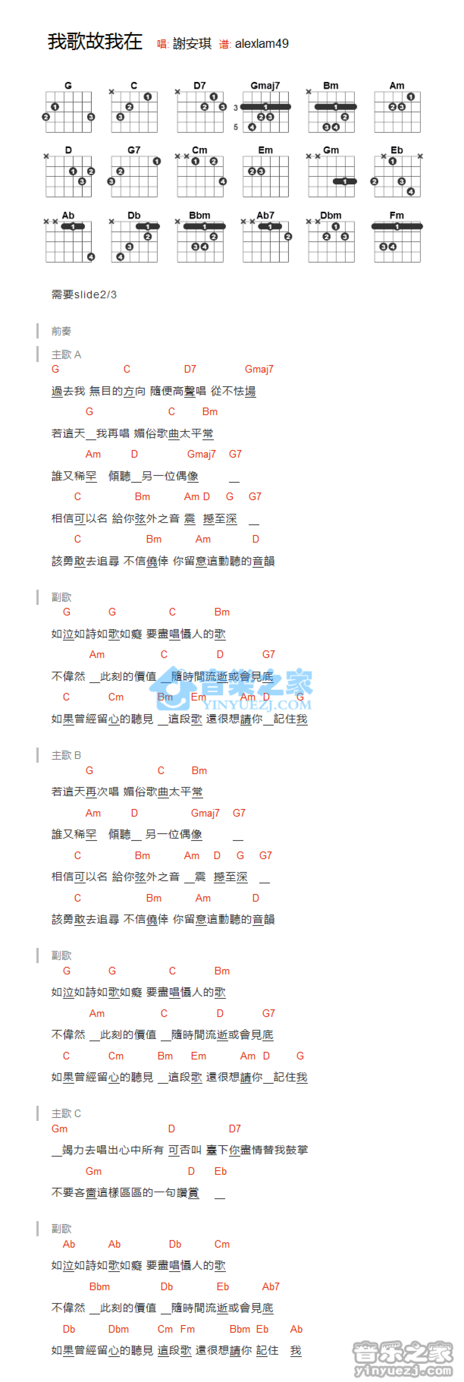 我歌故我在吉他谱 - 谢安琪 - G调吉他弹唱谱 - 和弦谱