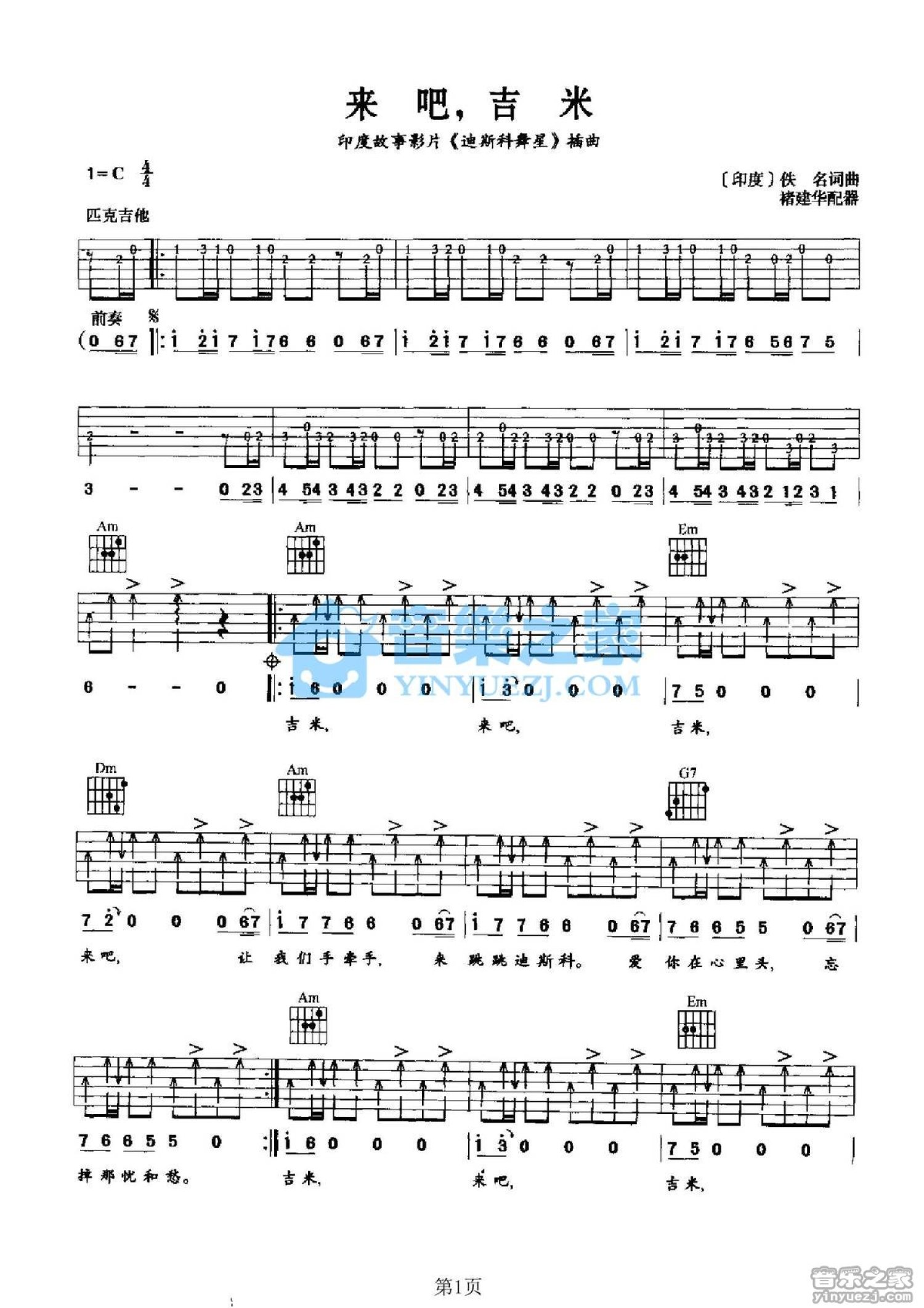 来吧吉米吉他谱 - 印度歌曲 - C调吉他弹唱谱