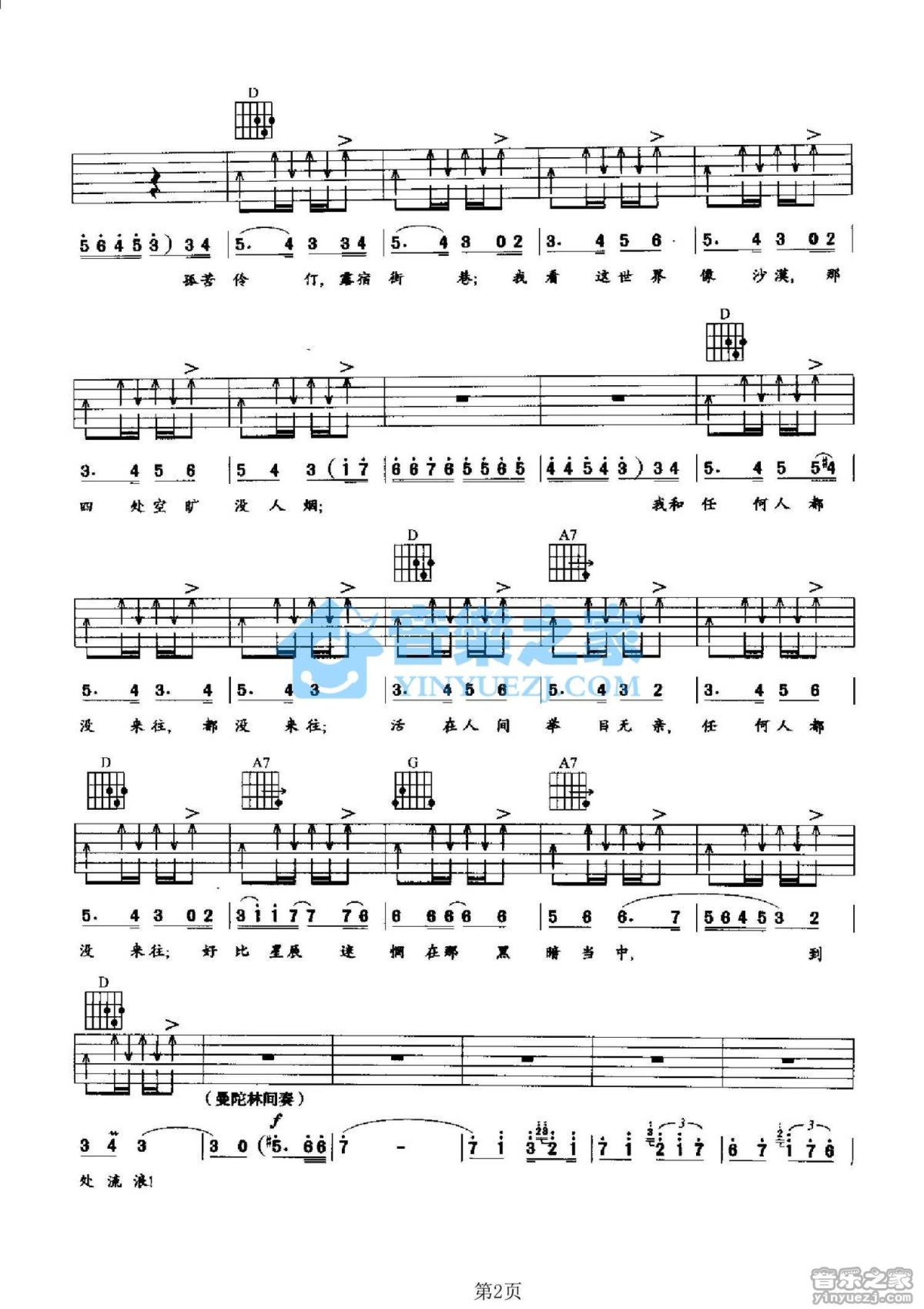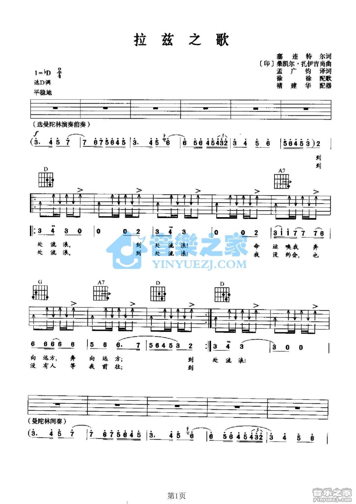 拉兹之歌吉他谱 - 印度电影流浪者插曲 - D调吉他弹唱谱