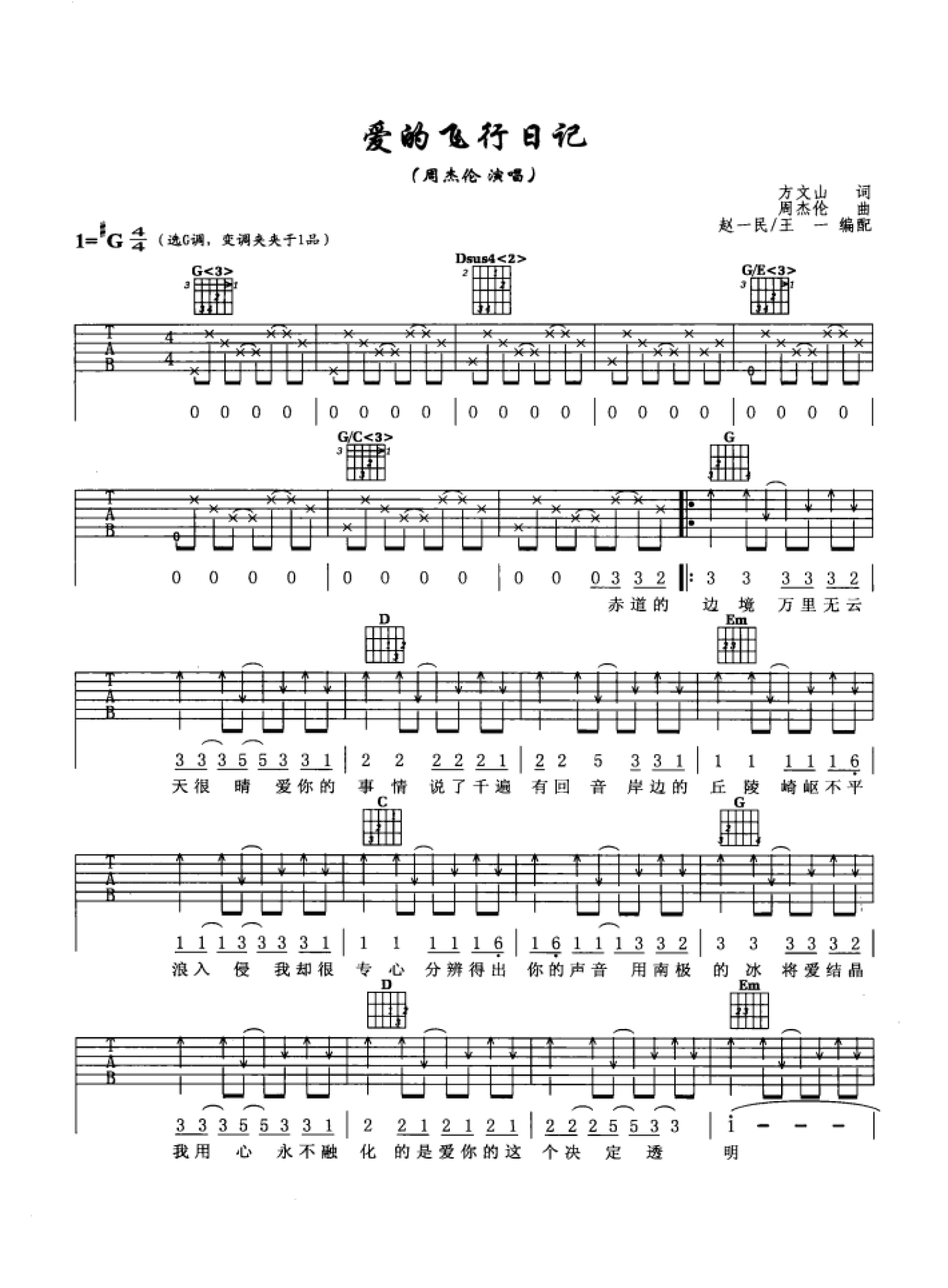 爱的飞行日记吉他谱 - 周杰伦 - G调吉他弹唱谱