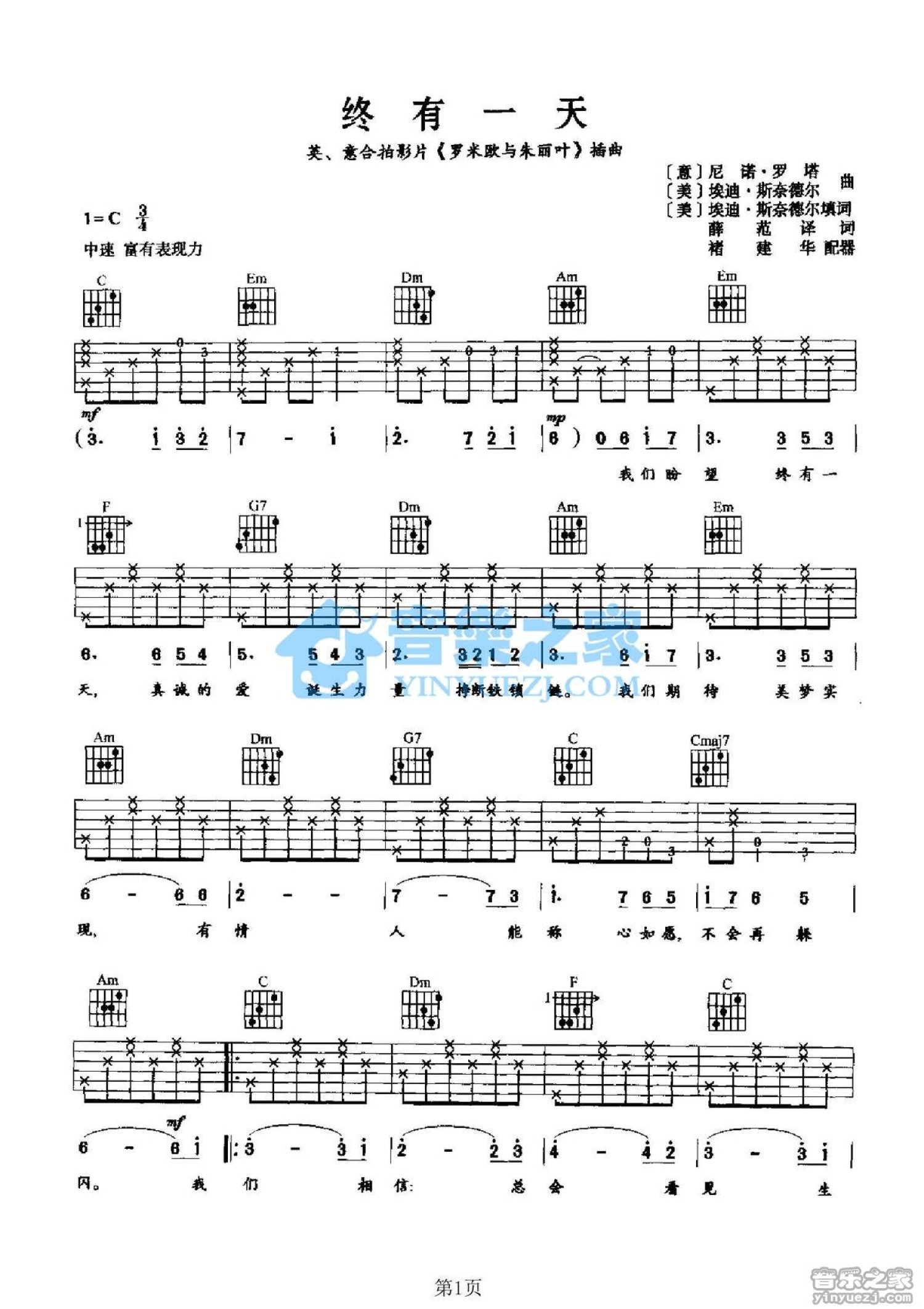 终有一天吉他谱 - 罗密欧与朱丽叶插曲 - C调吉他弹唱谱