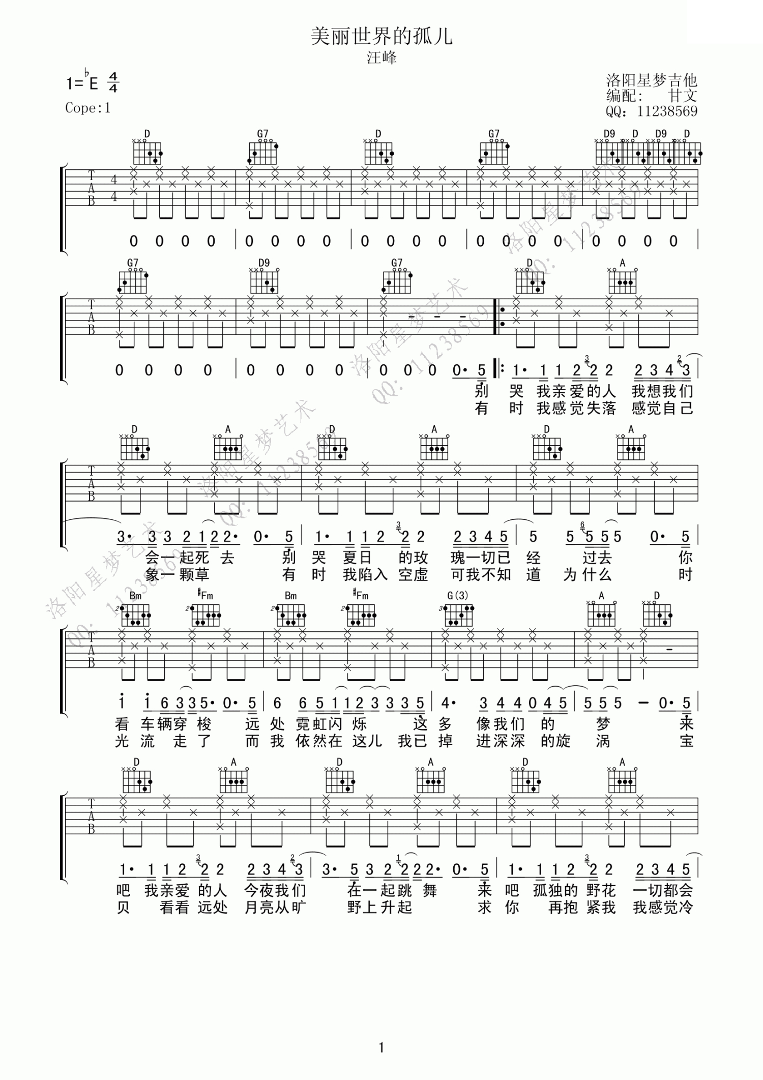 曲谱介绍: 汪峰美丽世界的孤儿吉他六线谱,原调降E,变调夹capo夹一品。在汪峰的音乐中,有孤独、自由、迷惘、坚强、青春、绝望,旋律中自己赋予自己的快乐,就像一面镜子,让人忍不住驻足回望,看看走过的路,想想当年的初衷,端详一下镜子中的自己,是否还认得出原本的样子。我们永远是这美丽世界的孤儿。每当委屈难过坚持不住的时候,脑海里总会萦绕起那首熟悉的旋律,美丽世界的孤儿吉他弹唱谱,一个人的生活,也可以过的很好。