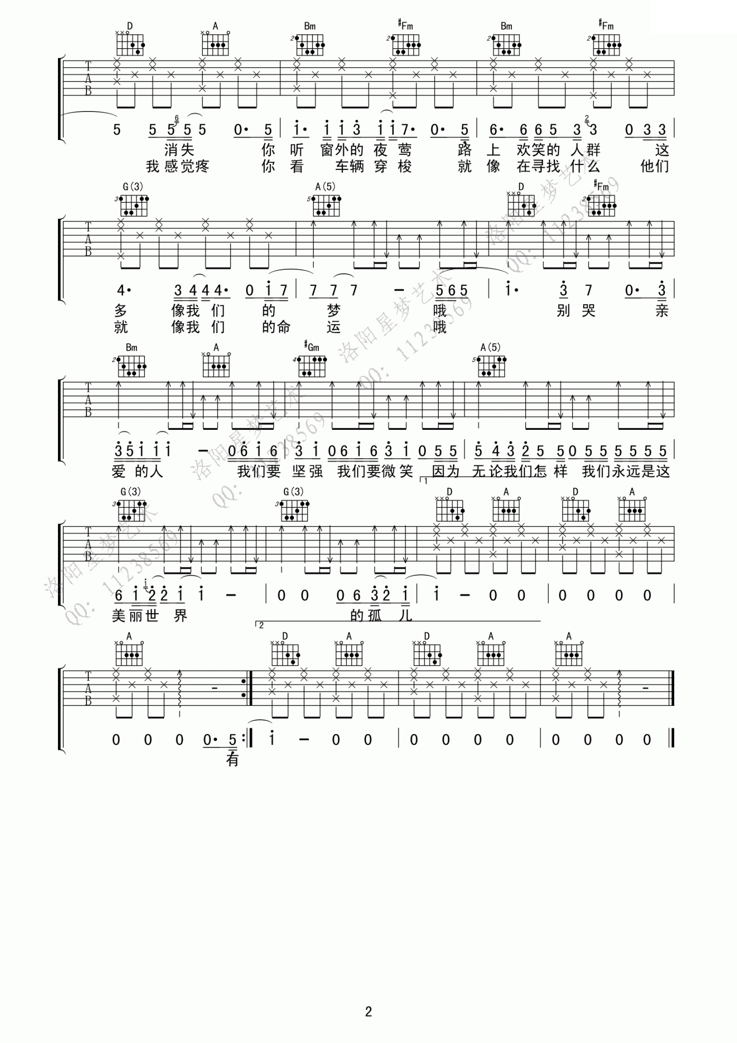 美丽世界的孤儿吉他谱 - 汪峰 - 吉他弹唱谱