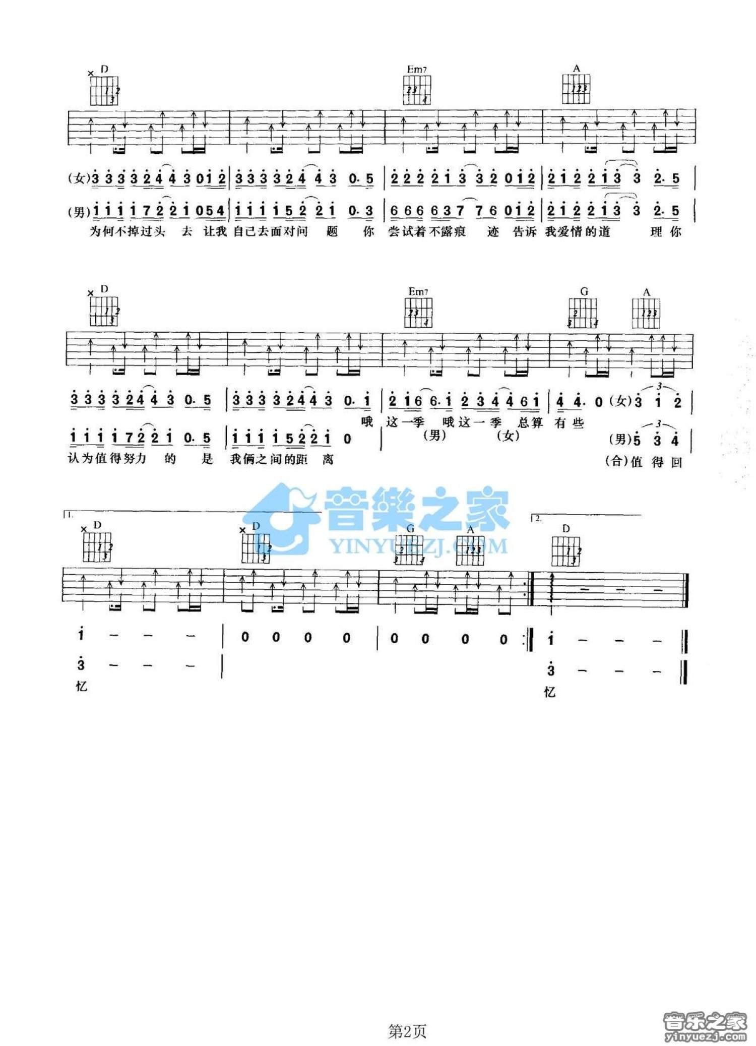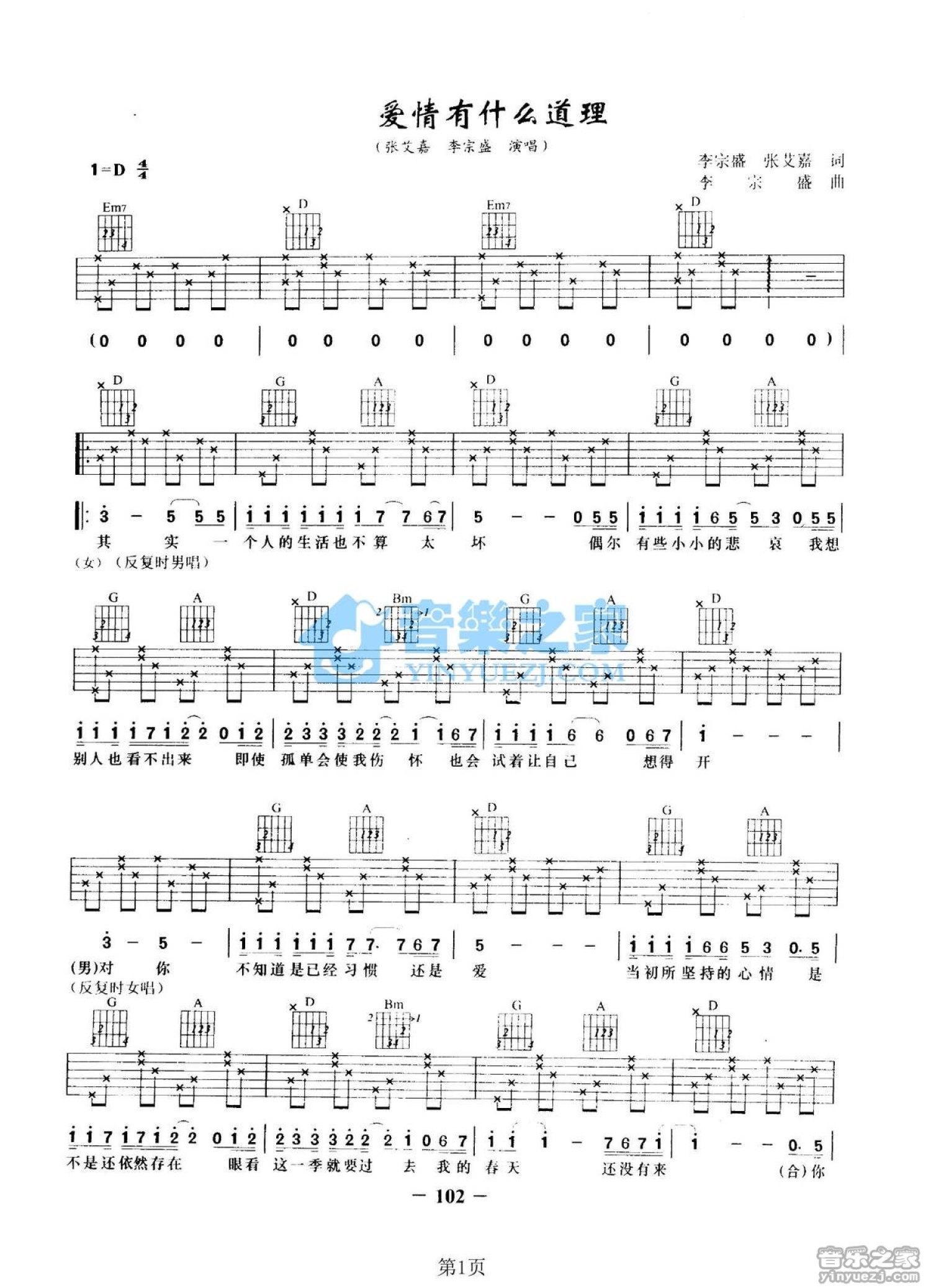 曲谱介绍: D调版张艾嘉/李宗盛《爱情有什么道理》吉他弹唱六线谱