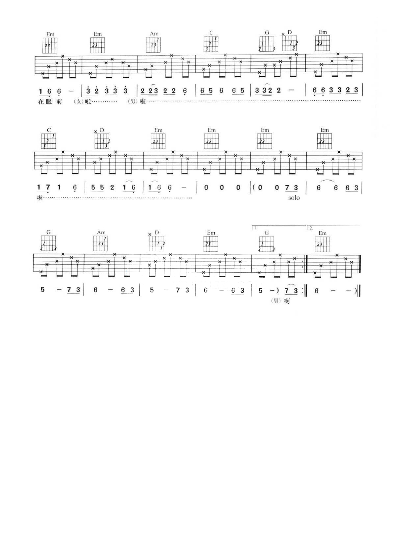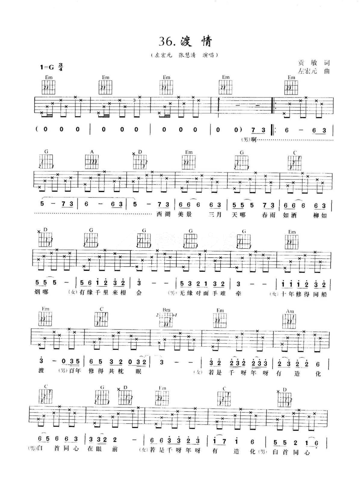 曲谱介绍: G调版左宏元/张慧清《渡情》吉他弹唱六线谱