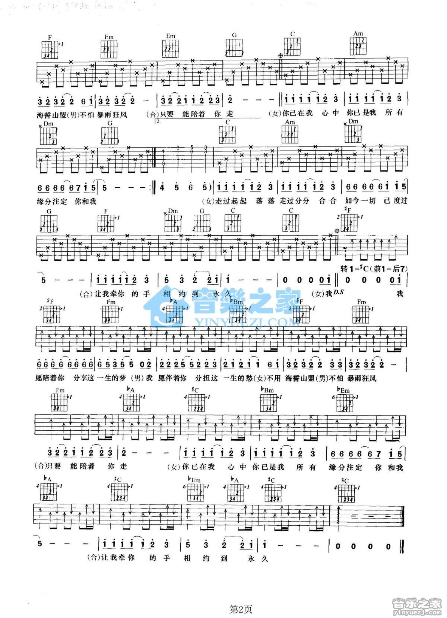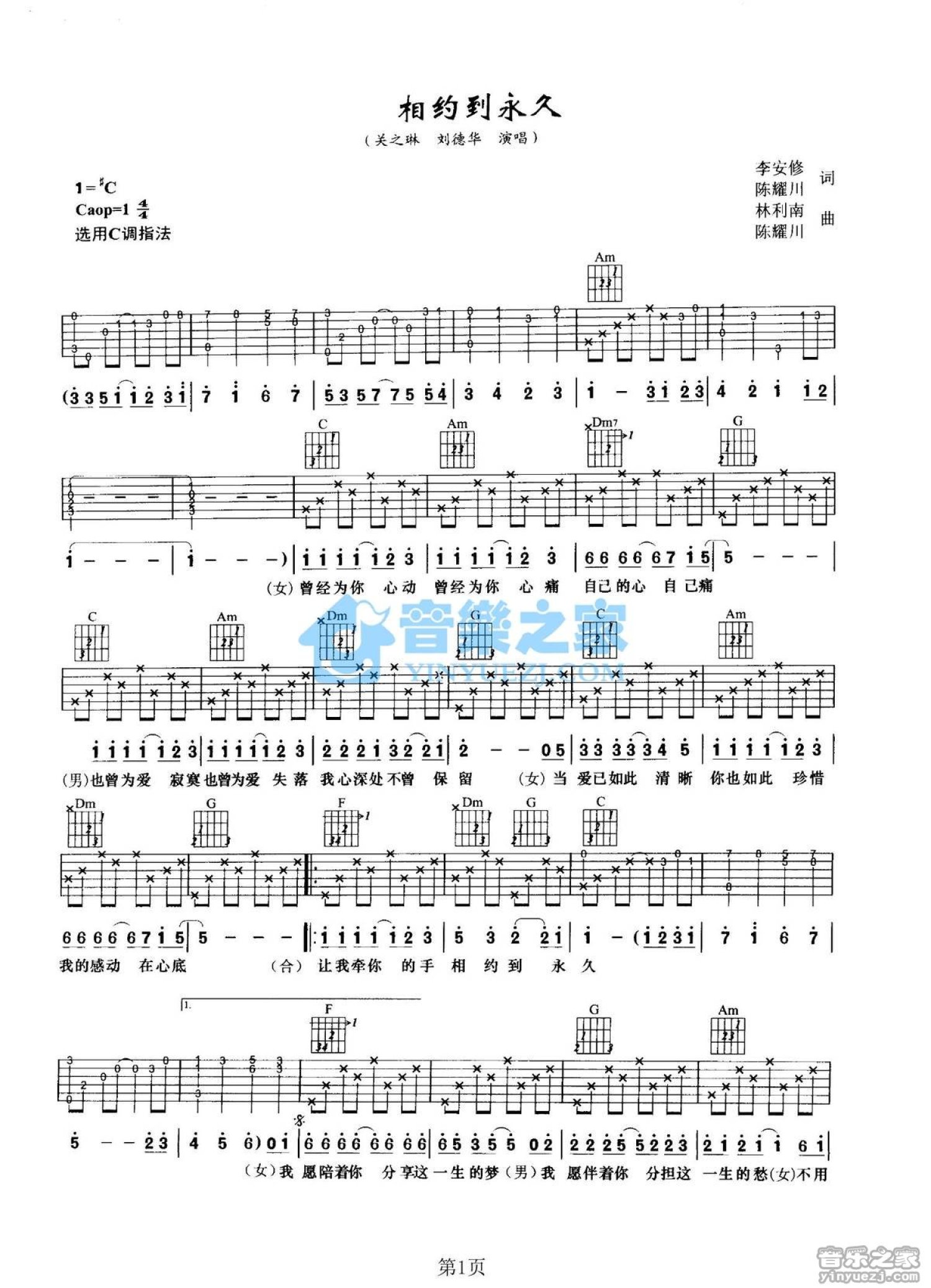 曲谱介绍: C调版关之琳/刘德华《相约到永久》吉他弹唱六线谱