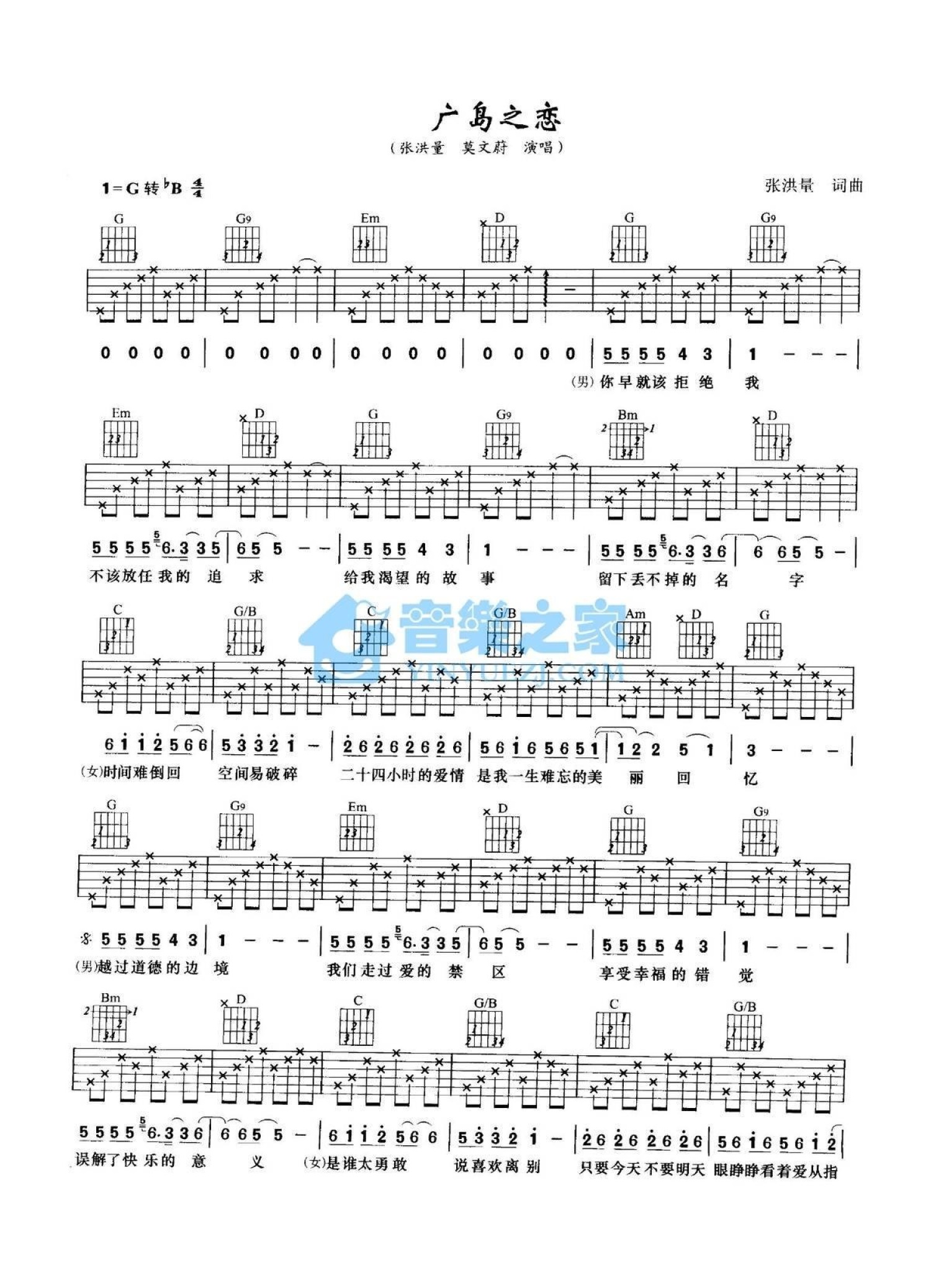广岛之恋吉他谱 - 张洪量/莫文蔚 - G调吉他弹唱谱