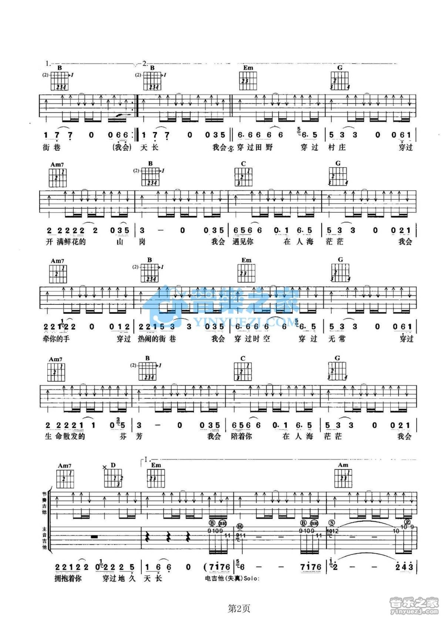 曲谱介绍: G调双吉他版冯吉《芬芳之旅》吉他弹唱六线谱
