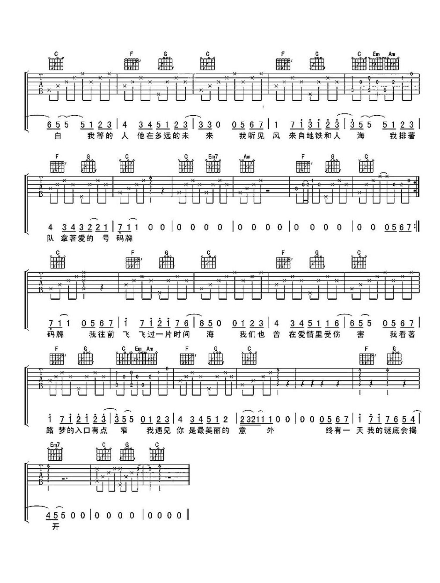 遇见吉他谱 - 孙燕姿 - C调吉他弹唱谱