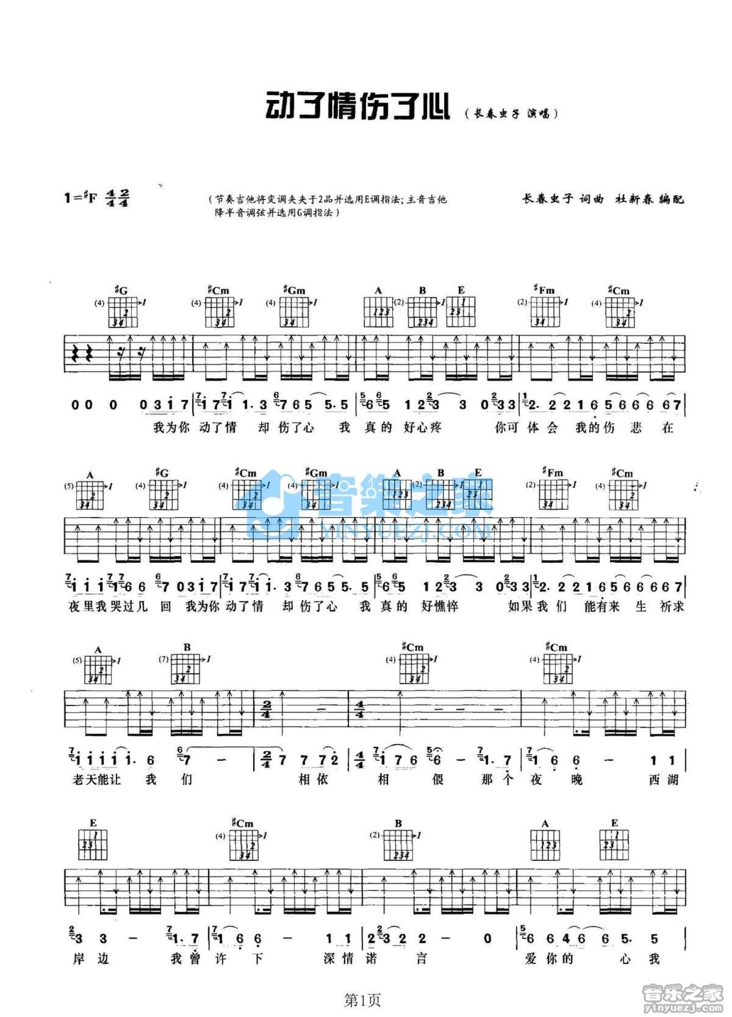 曲谱介绍: E调双吉他版长春虫子《动了情伤了心》吉他弹唱六线谱