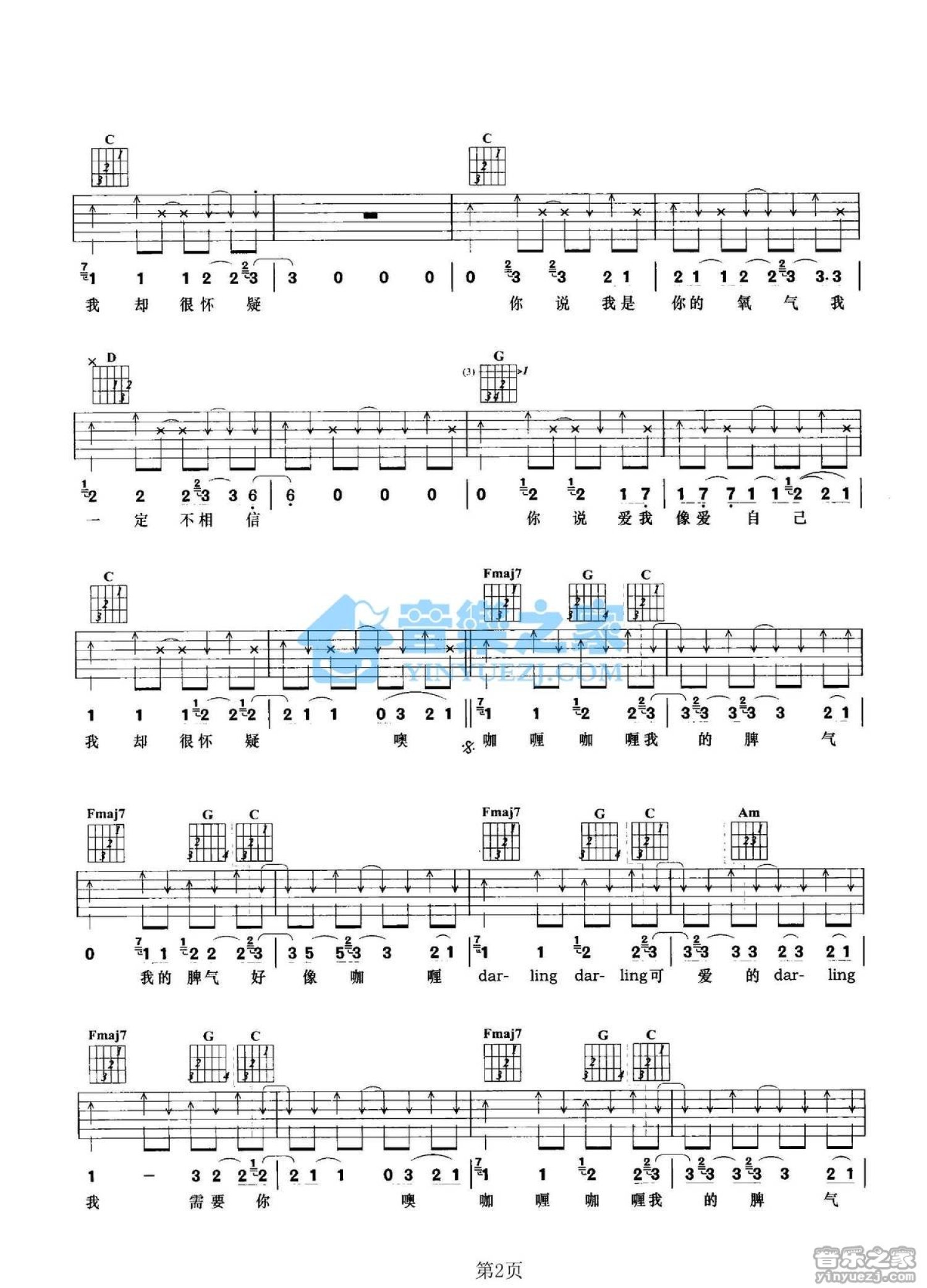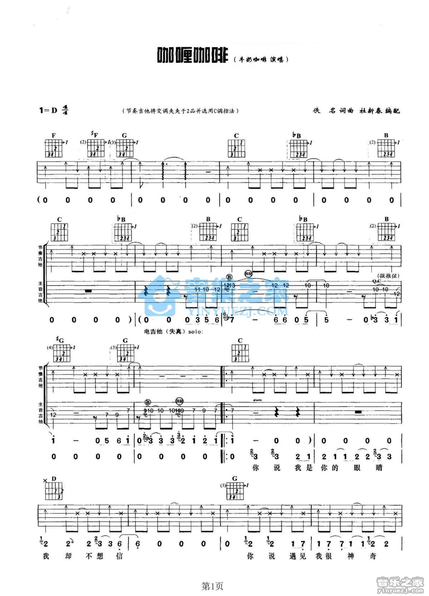 曲谱介绍: C调双吉他版牛奶咖啡《咖喱咖啡》吉他弹唱六线谱
