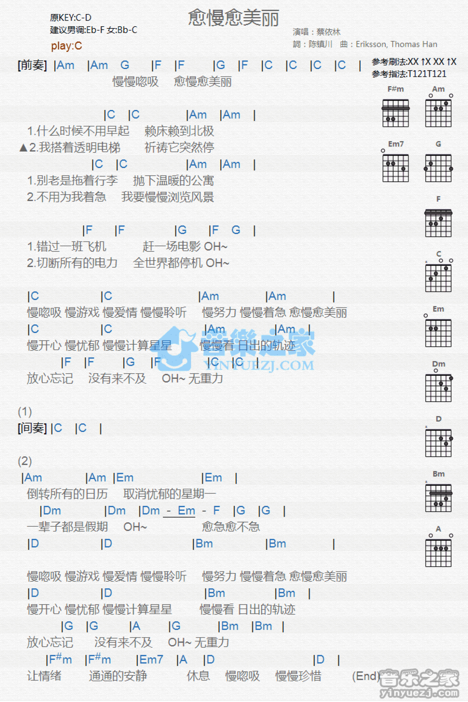 愈慢愈美丽吉他谱 - 蔡依林 - C调吉他弹唱谱 - 和弦谱