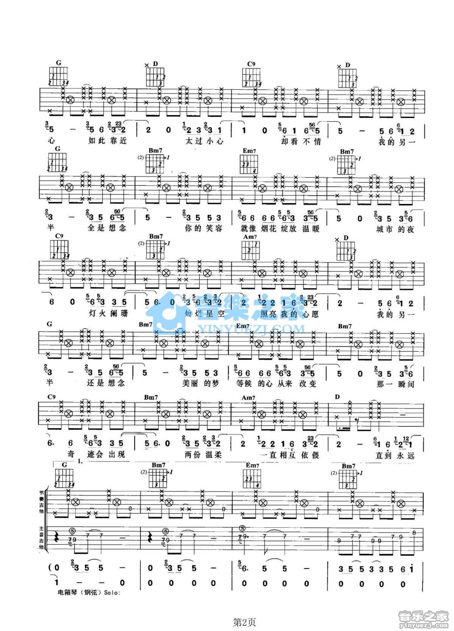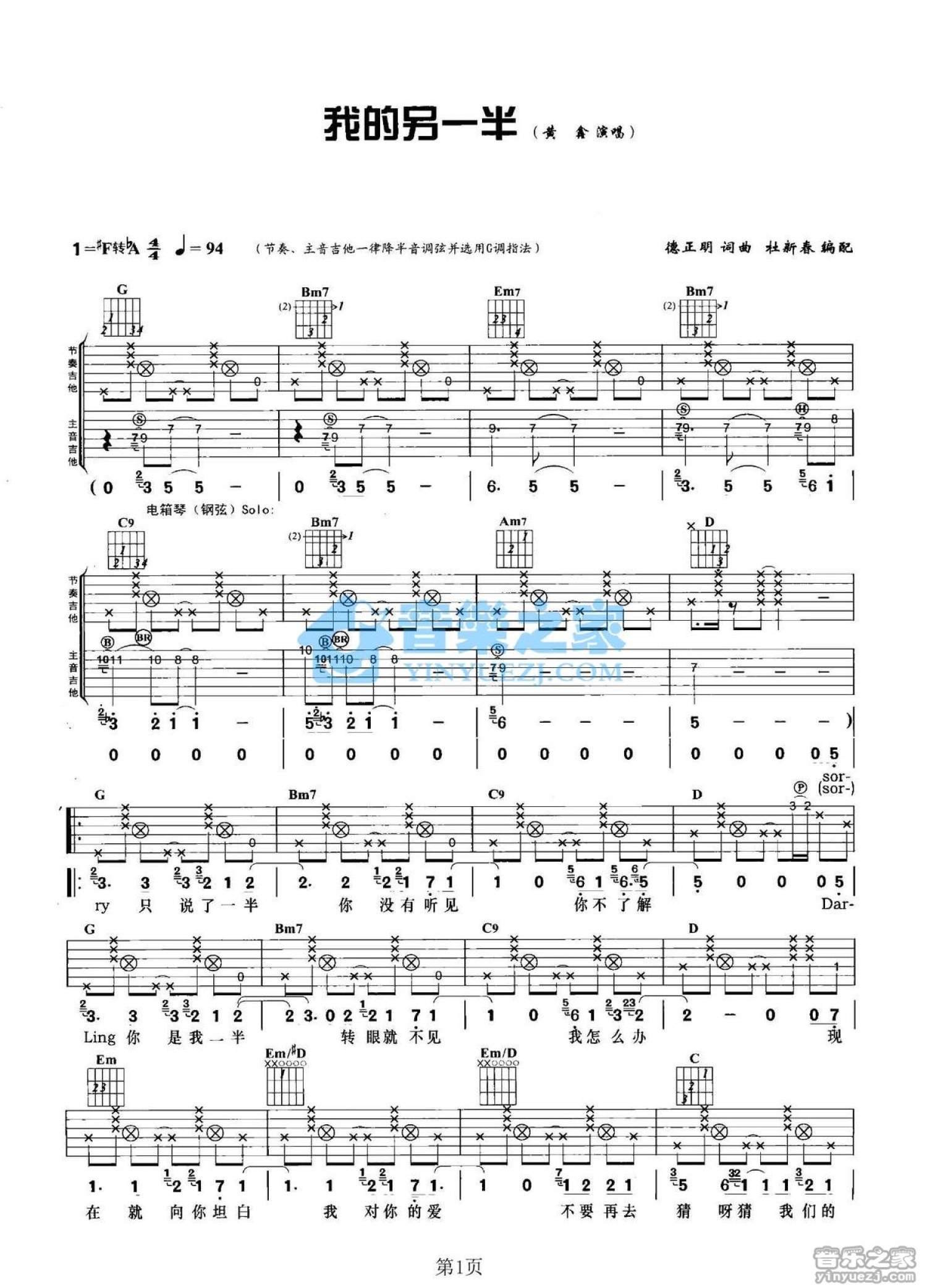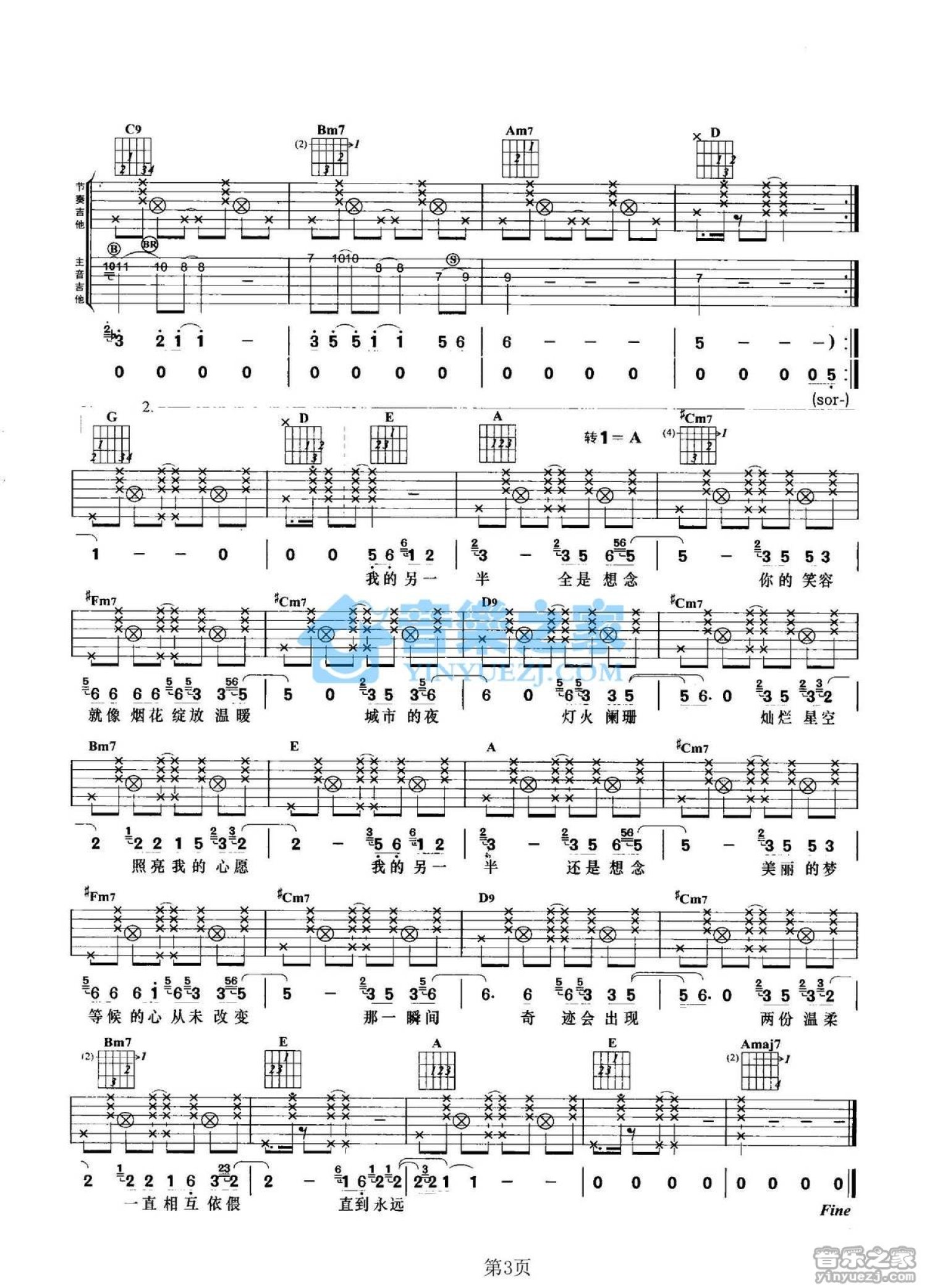 曲谱介绍: G调《我的另一半》吉他弹唱六线谱