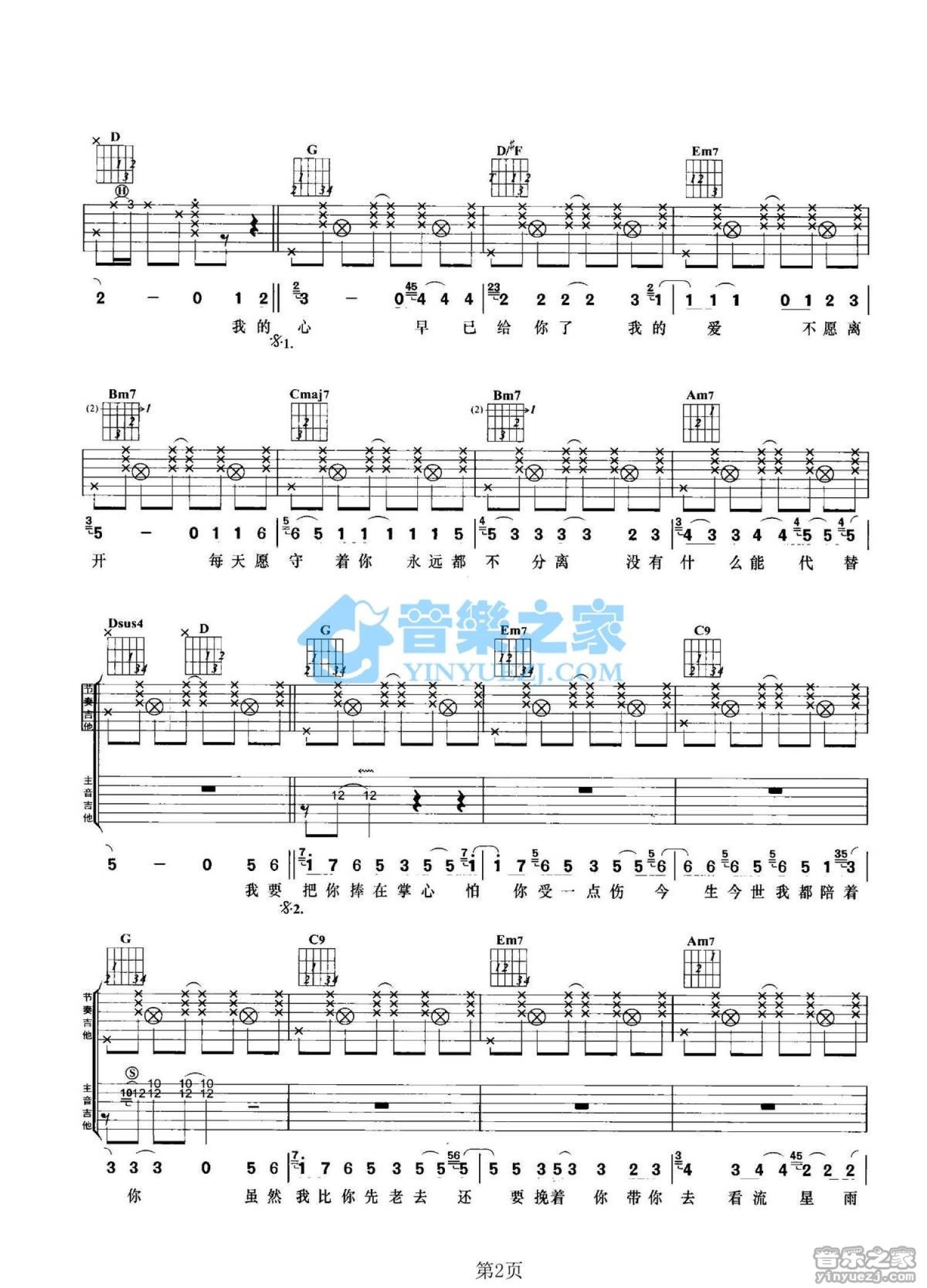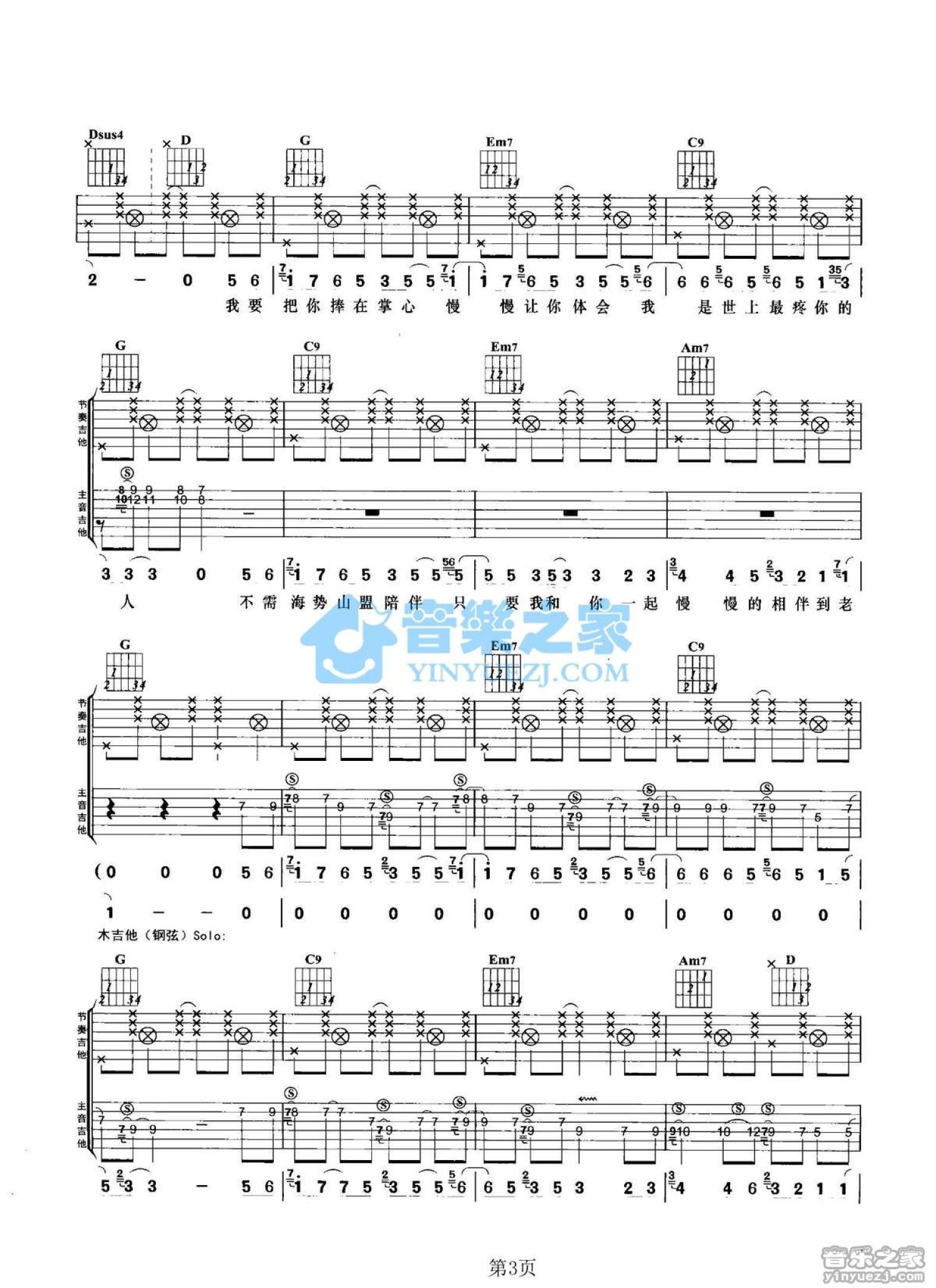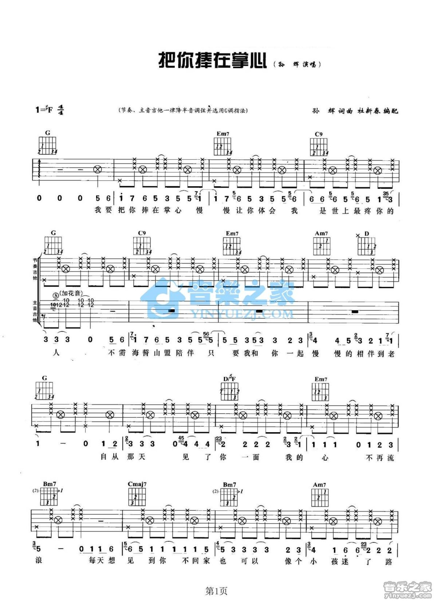 曲谱介绍: G调双吉他版孙辉《把你捧在掌心》吉他弹唱六线谱