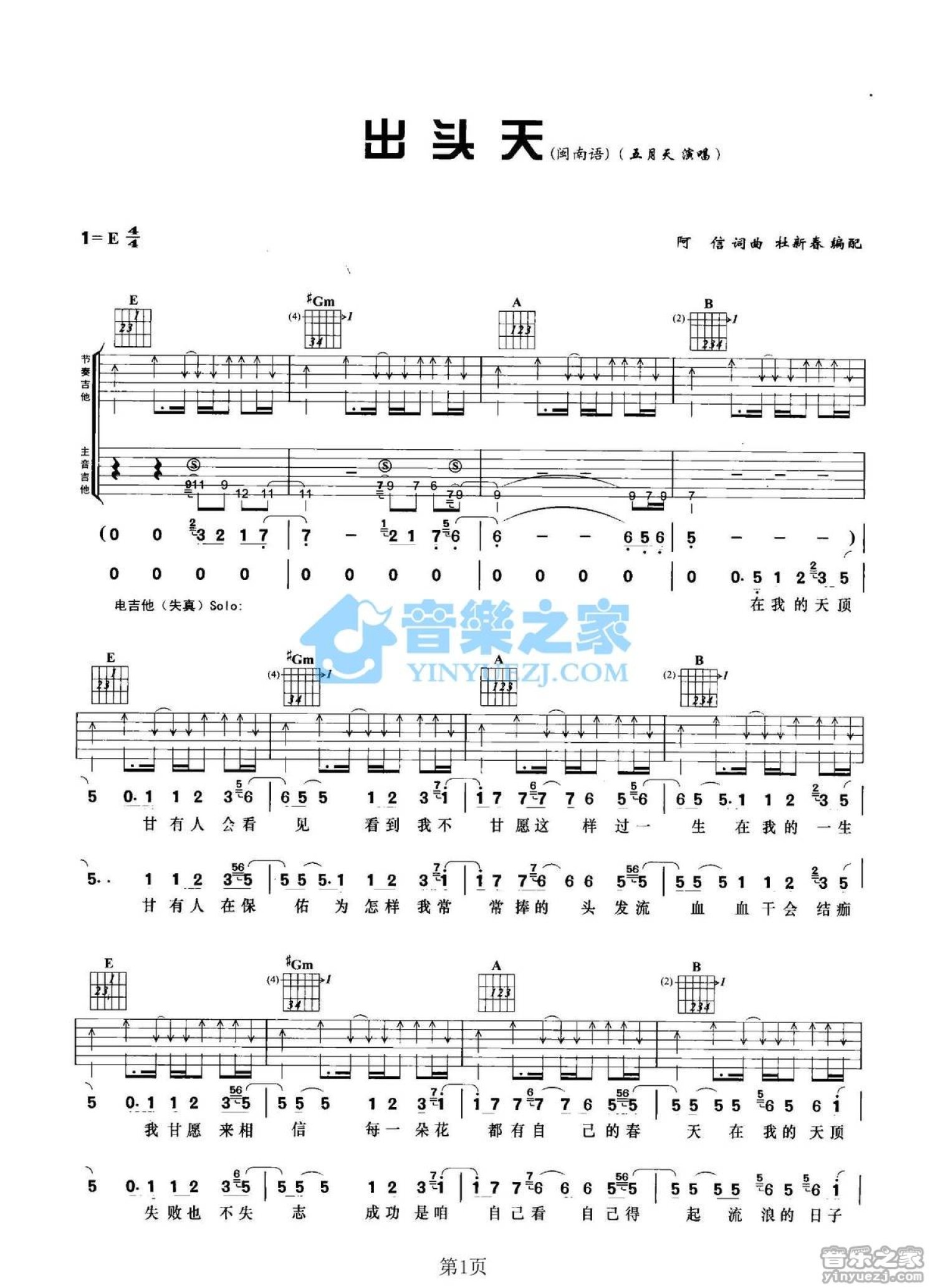 曲谱介绍: E调双吉他版五月天《出头天》吉他弹唱六线谱