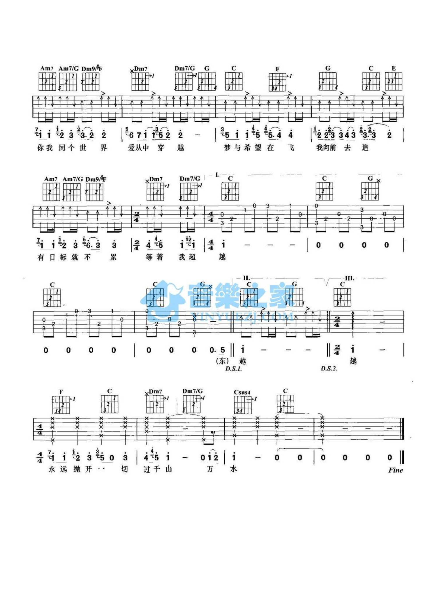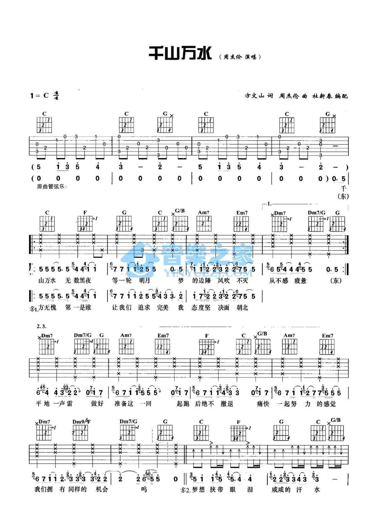 曲谱介绍: C调版周杰伦《千山万水》吉他弹唱六线谱