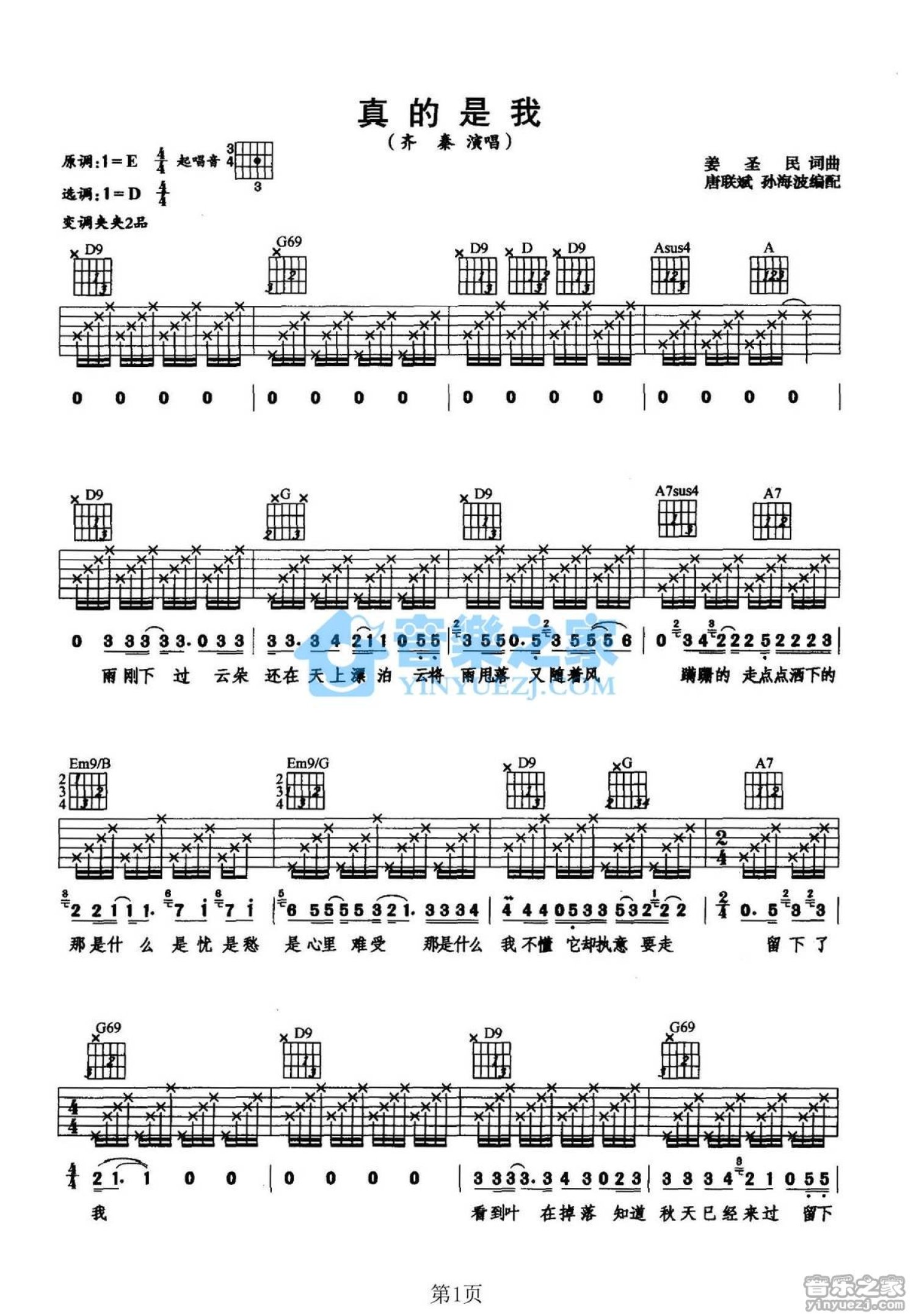 曲谱介绍: D调版齐秦《真的是我》吉他弹唱六线谱