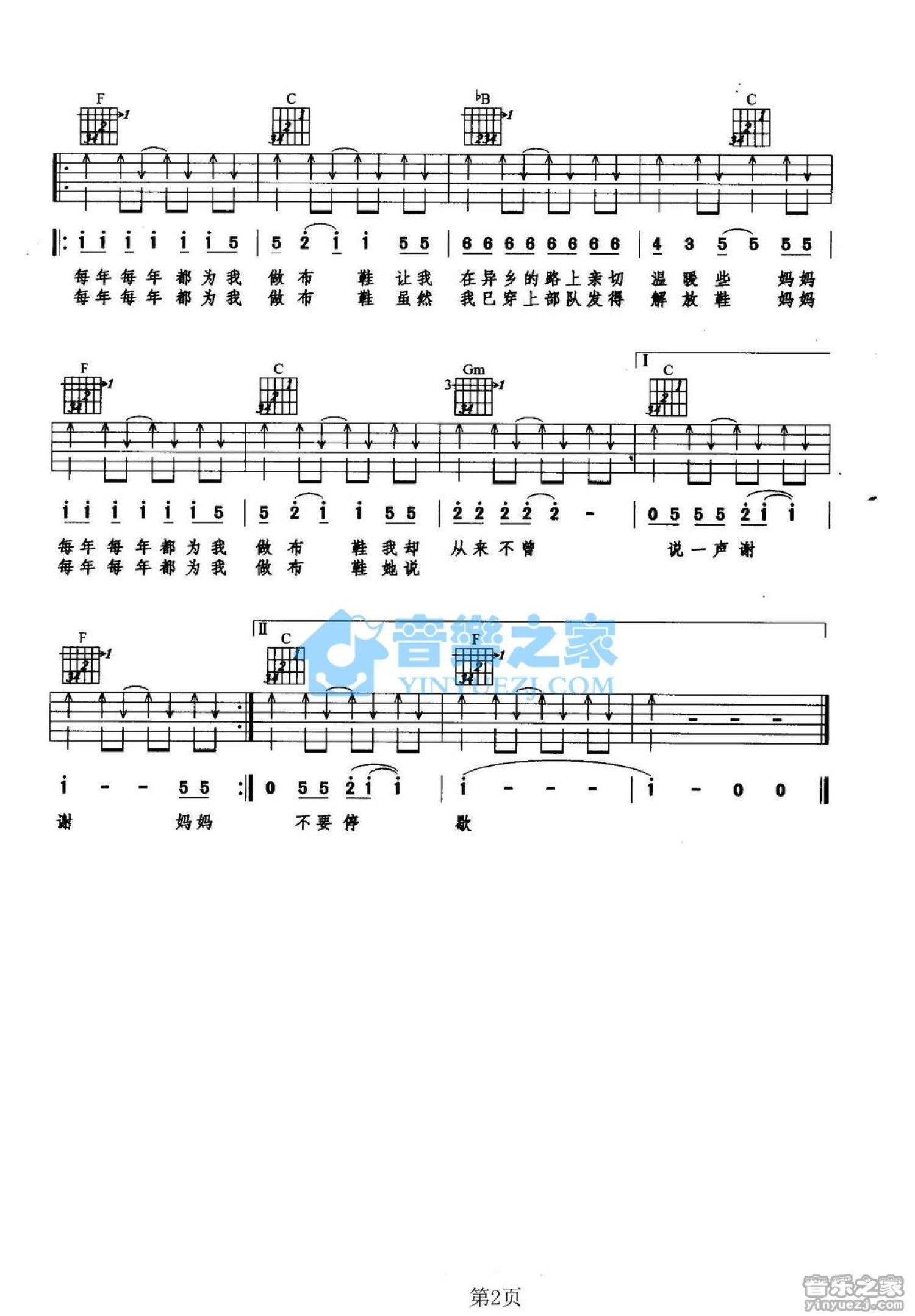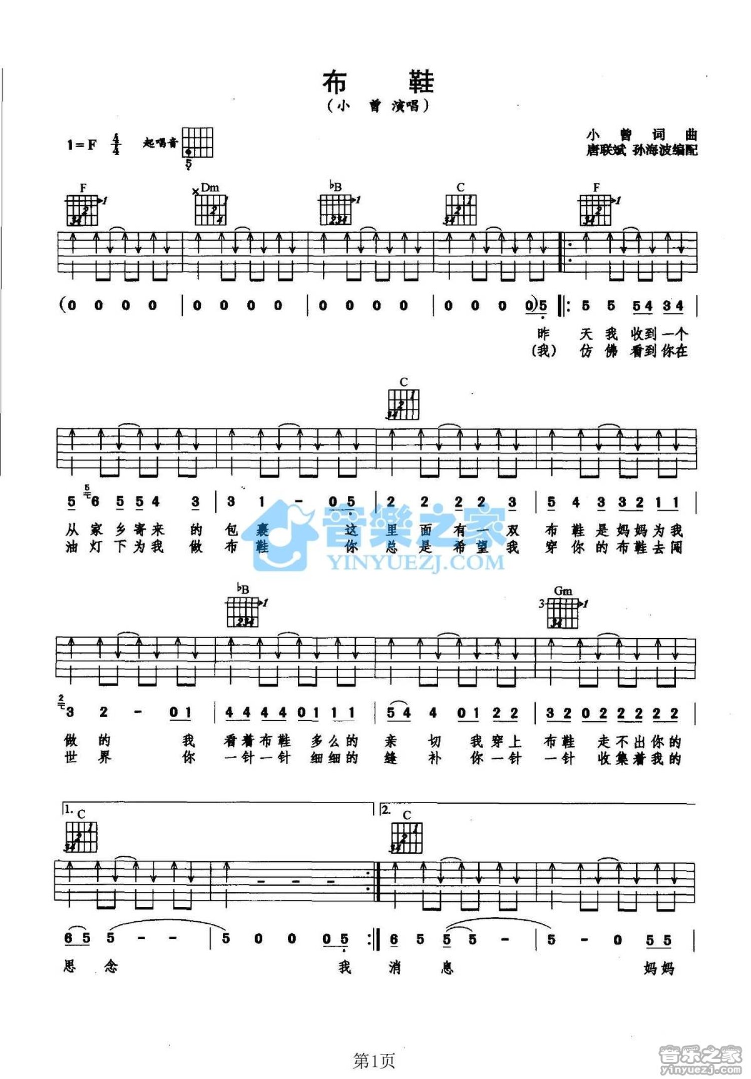 曲谱介绍: F调版小曾《布鞋》吉他弹唱六线谱