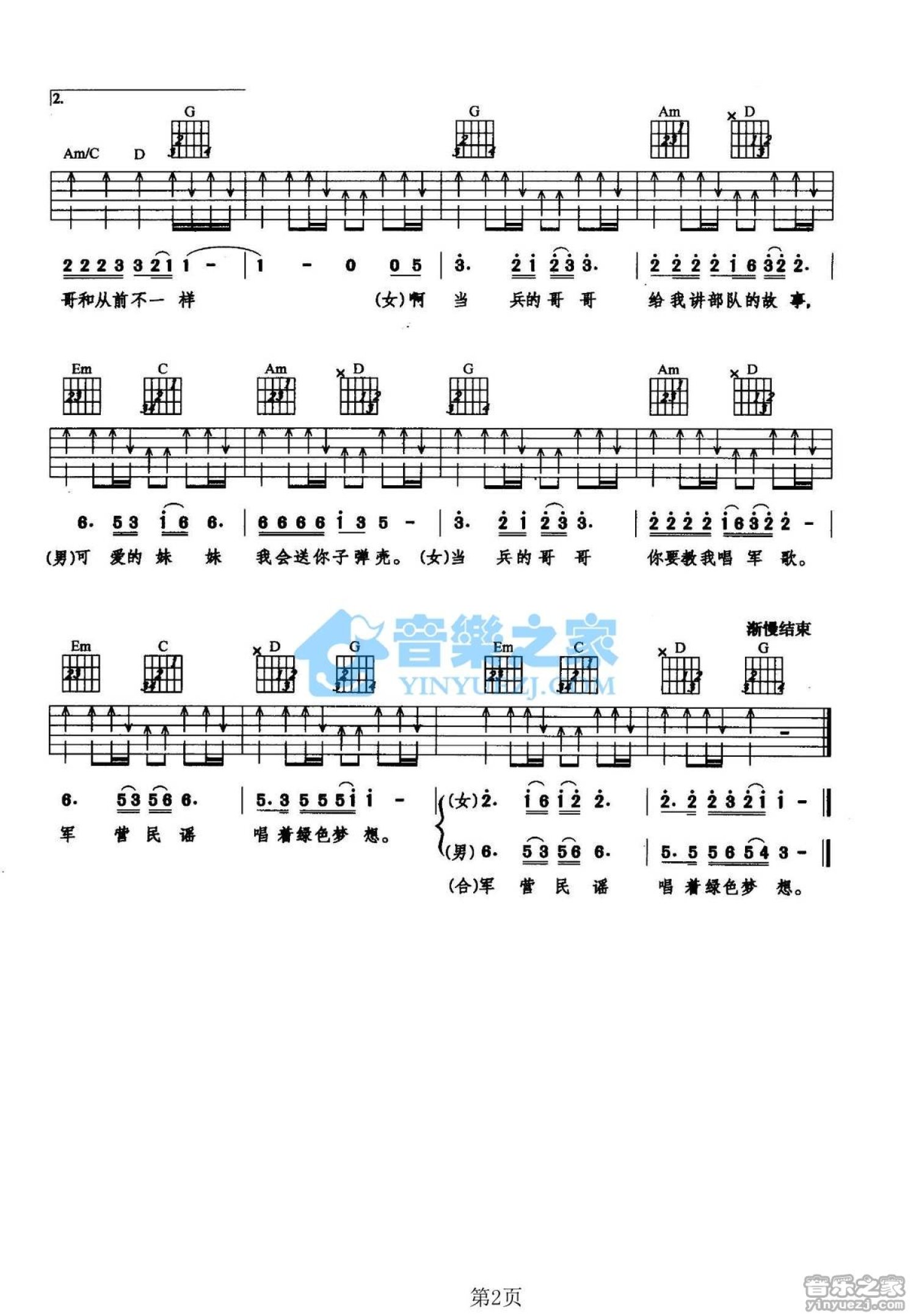 绿军装的梦吉他谱 - 杨柳/高歌 - G调吉他弹唱谱