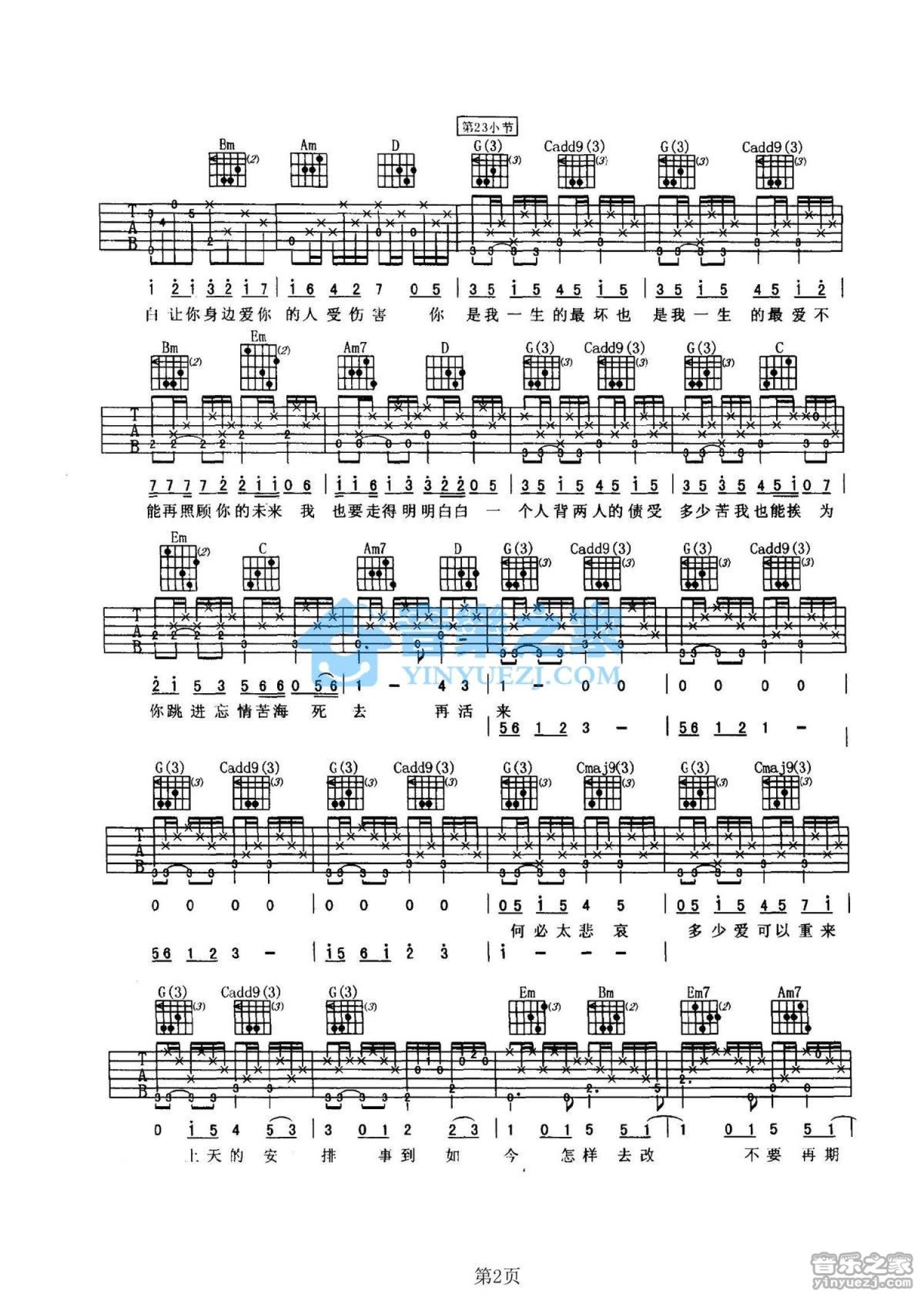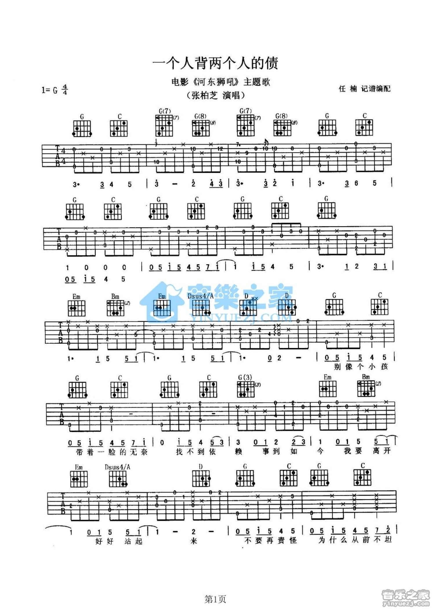 曲谱介绍: G调版张柏芝《一个人背两个人的债》吉他弹唱六线谱