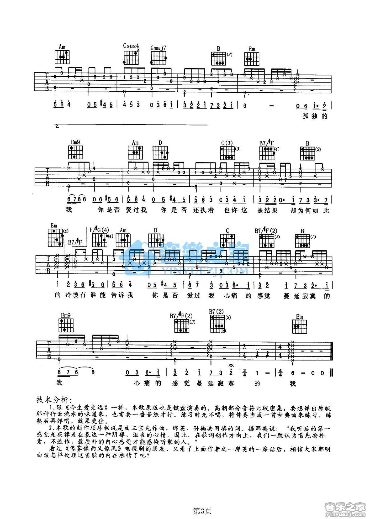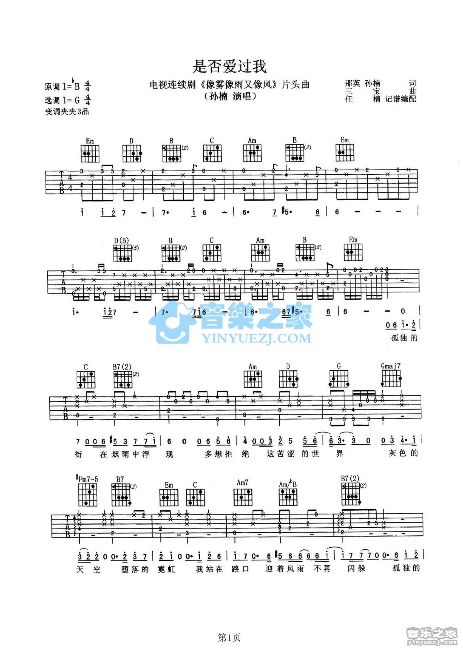 曲谱介绍: G调简单版孙楠《是否爱过我》吉他弹唱六线谱