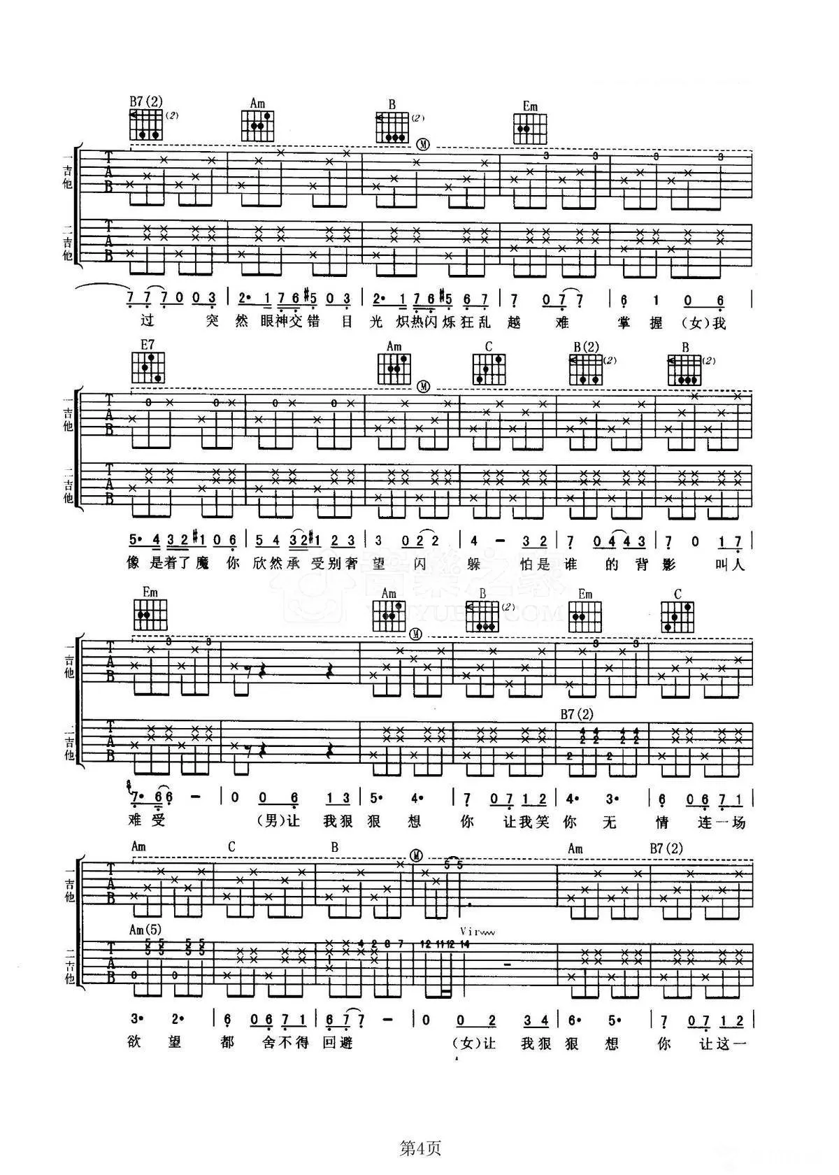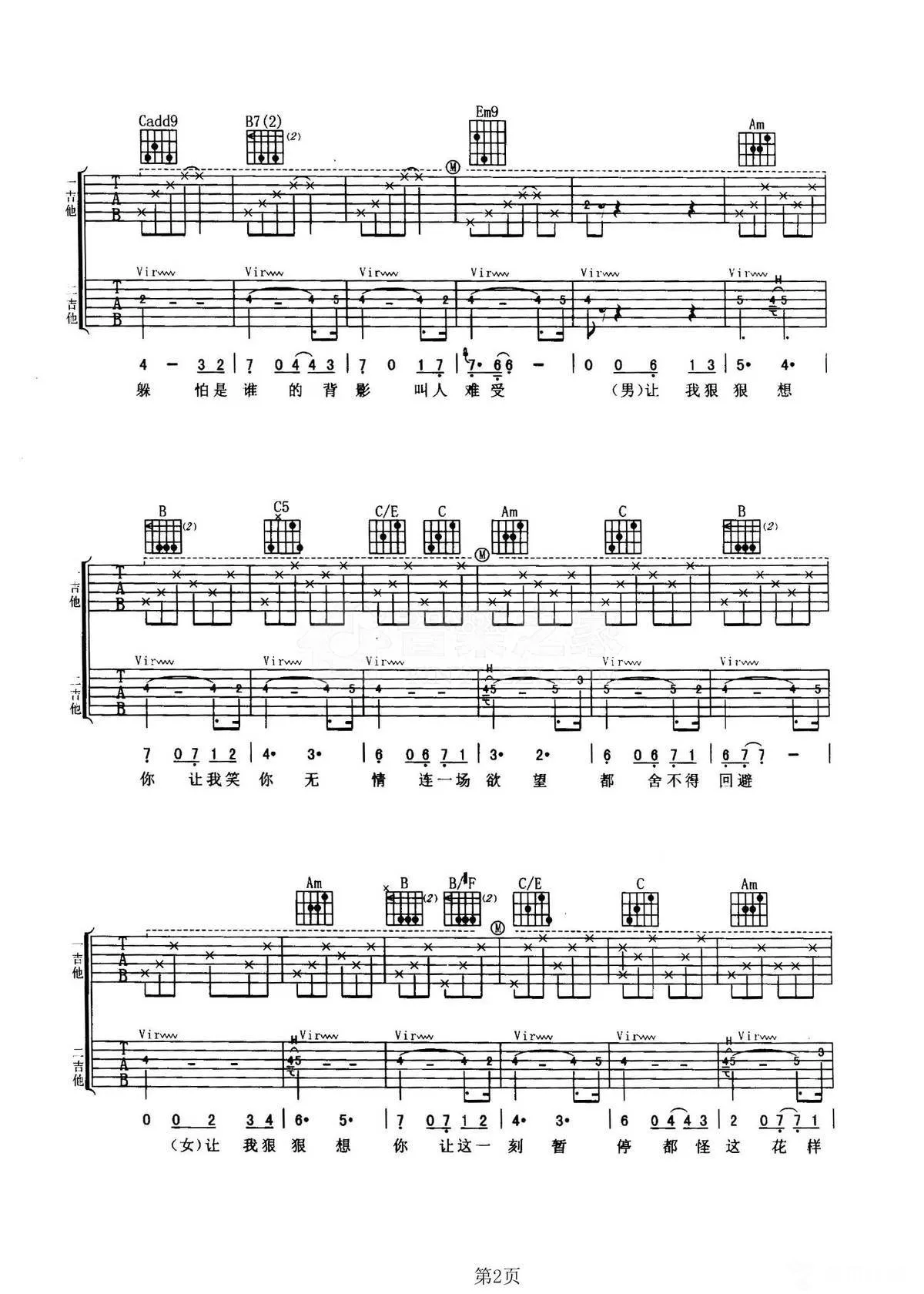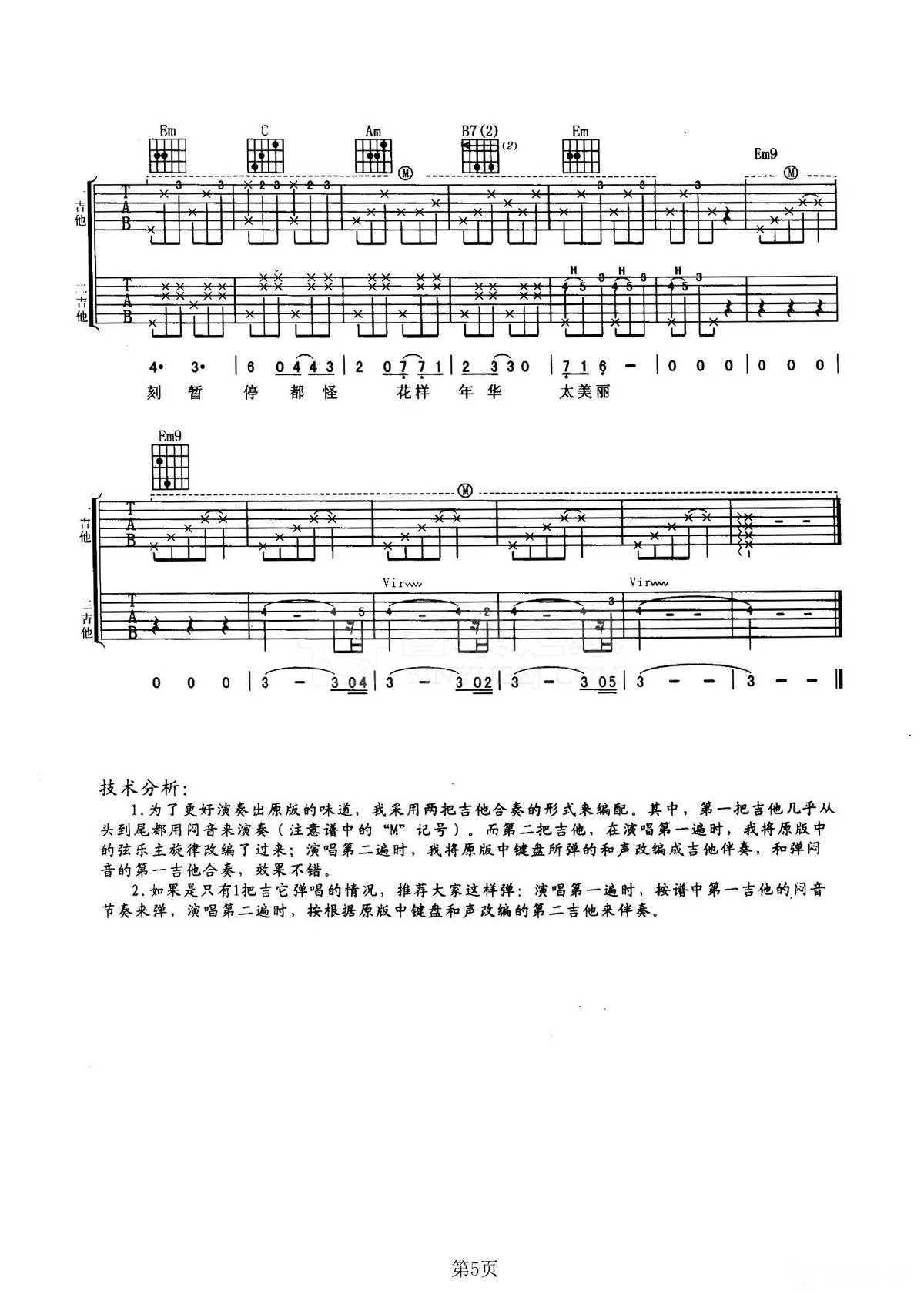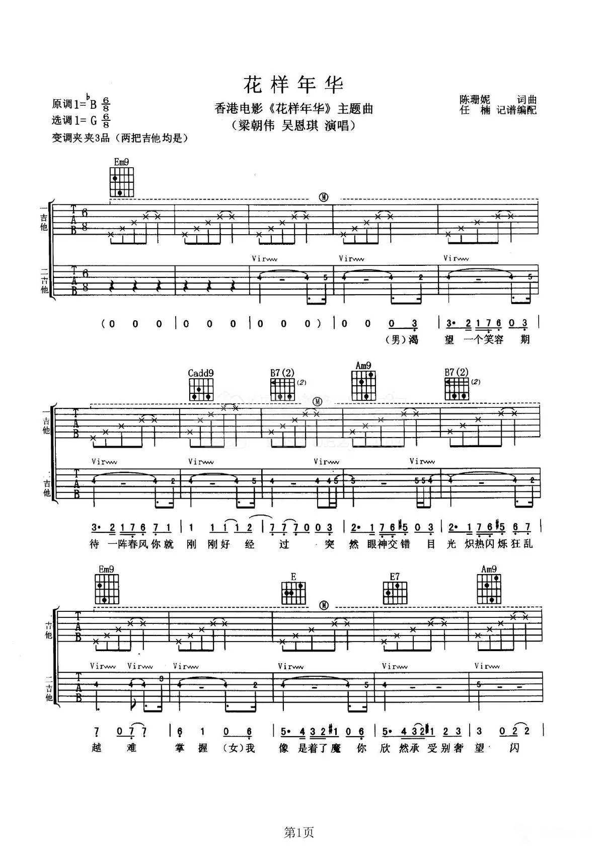 曲谱介绍: G调双吉他版梁朝伟/吴恩琪《花样年华》吉他弹唱六线谱