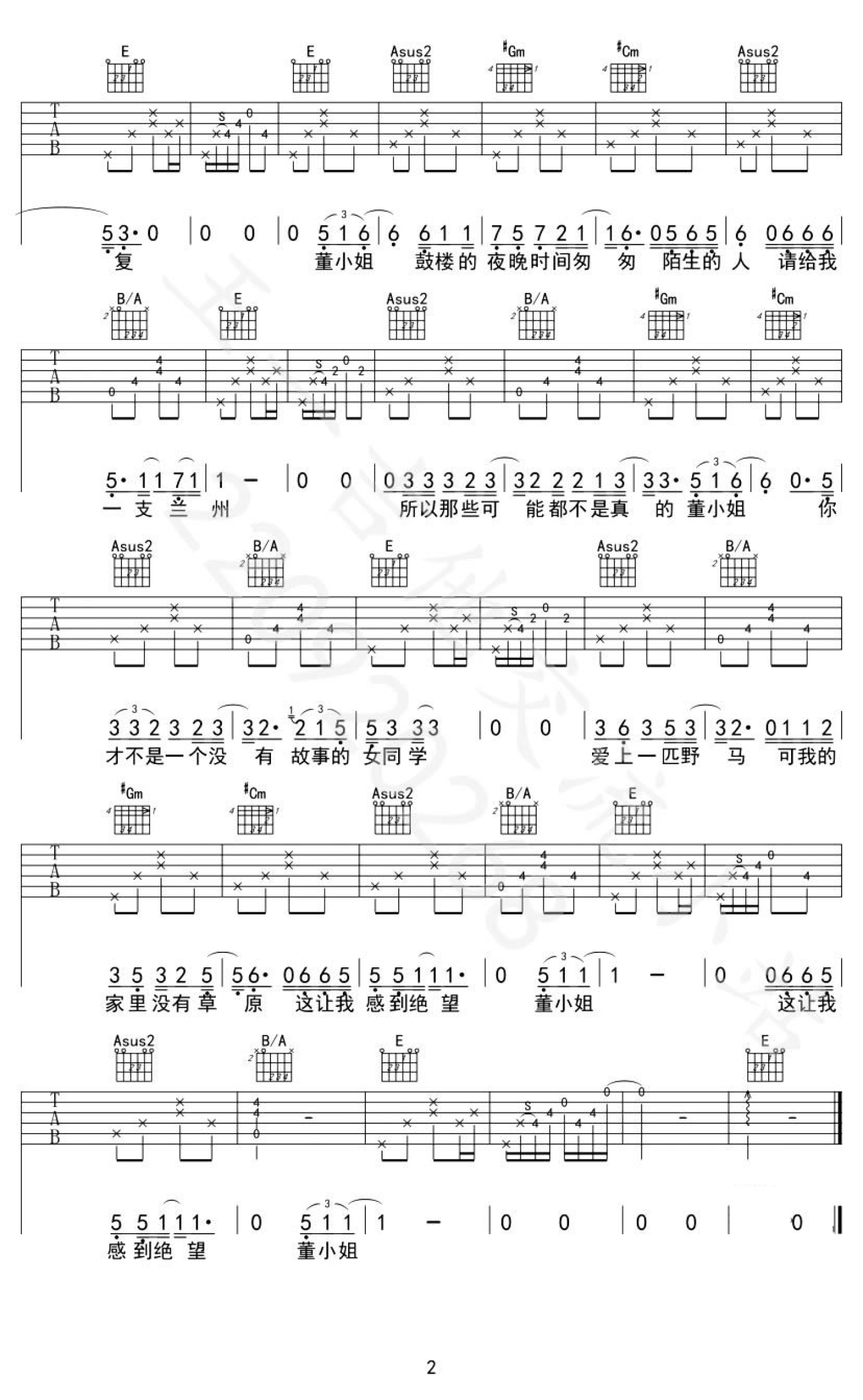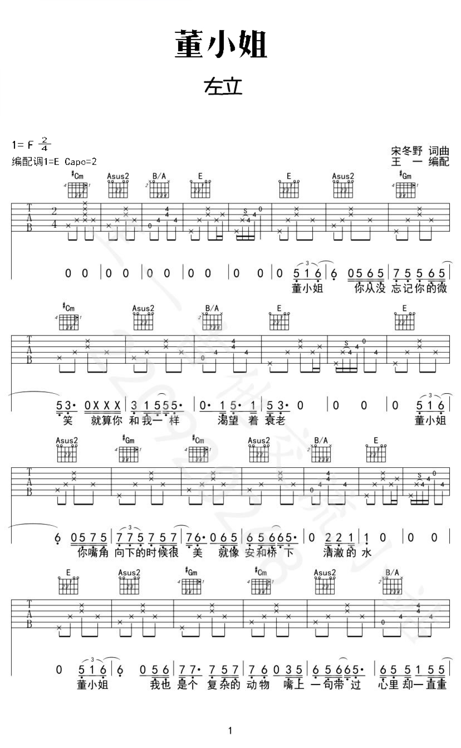董小姐吉他谱 - 宋冬野/左立 - E调吉他弹唱谱