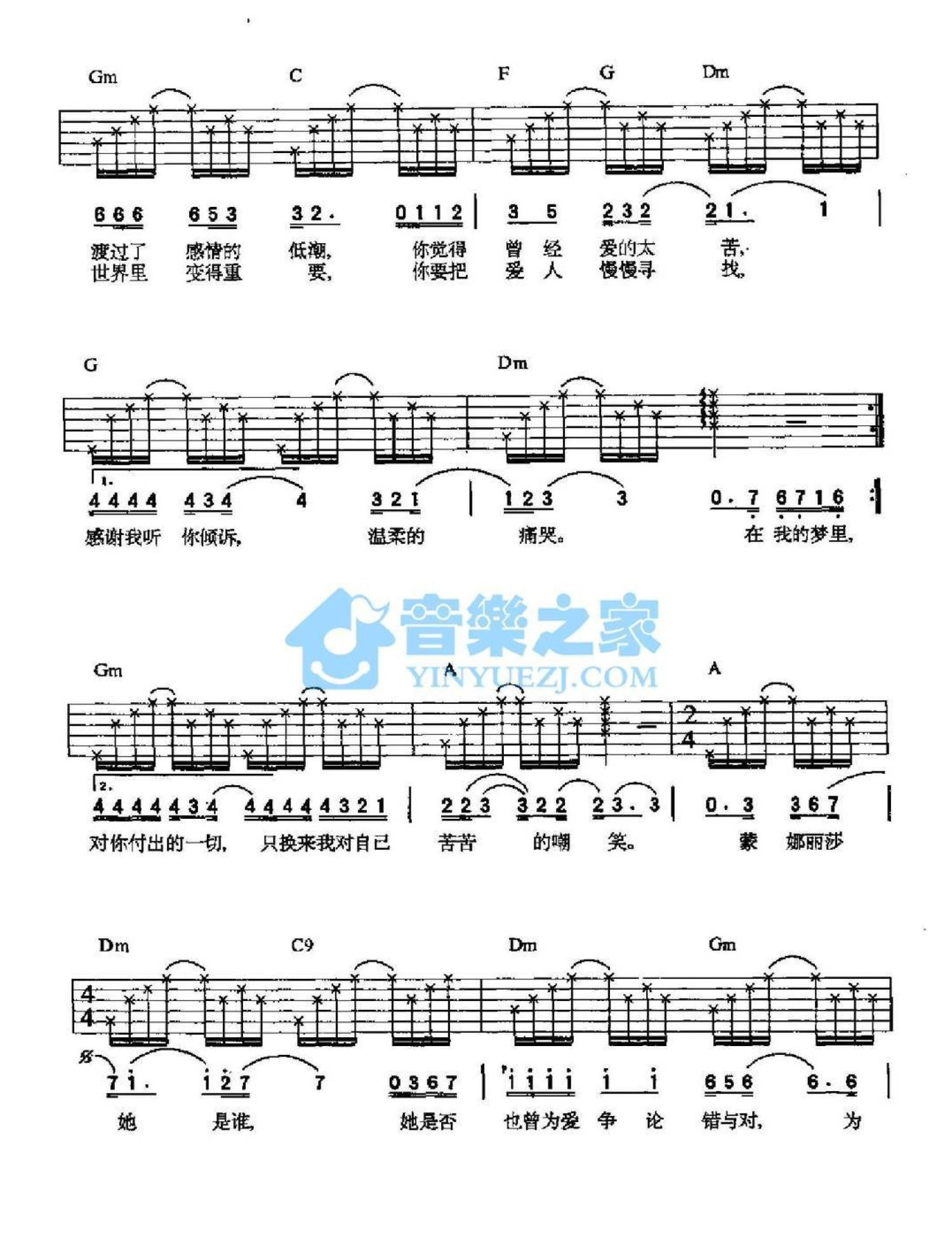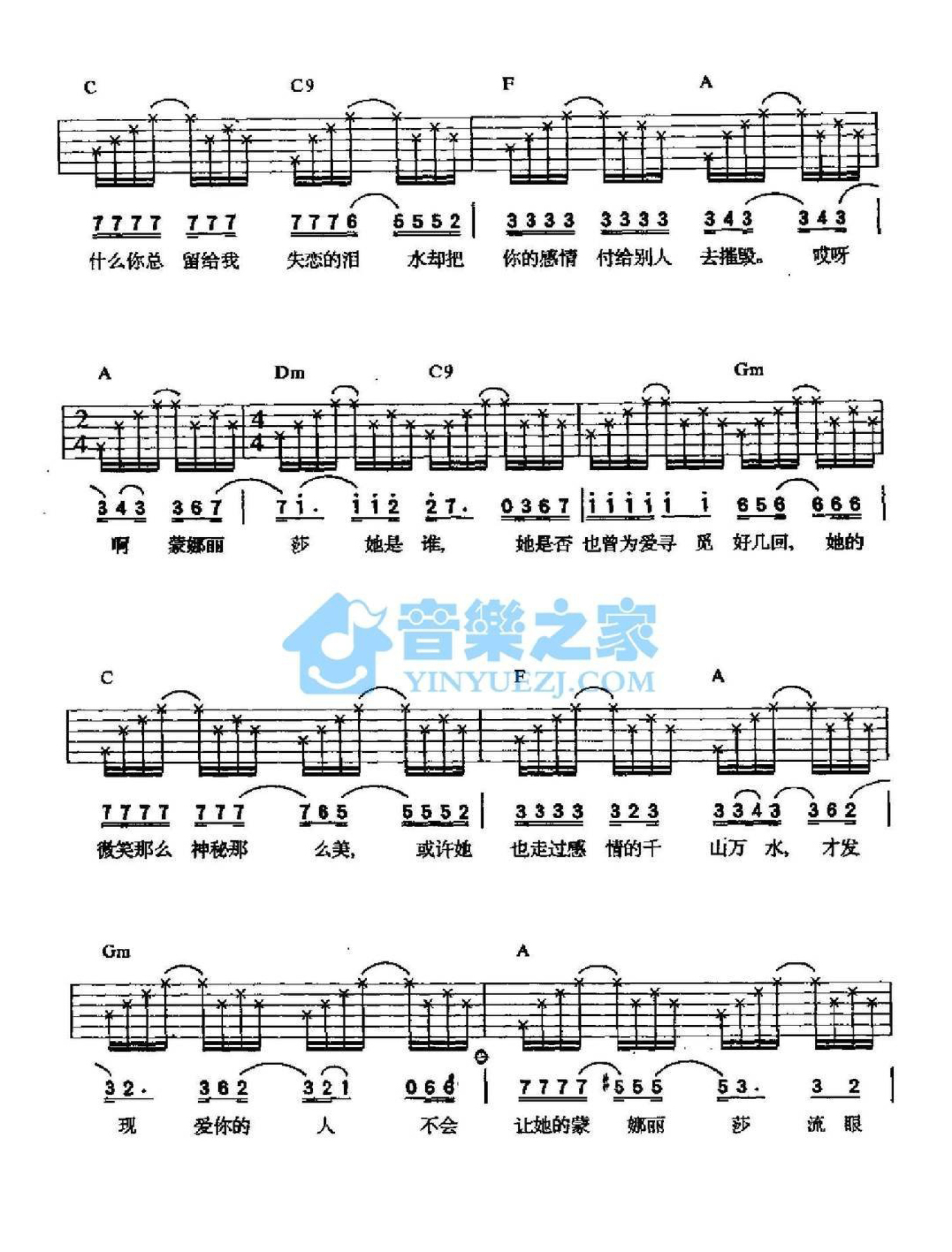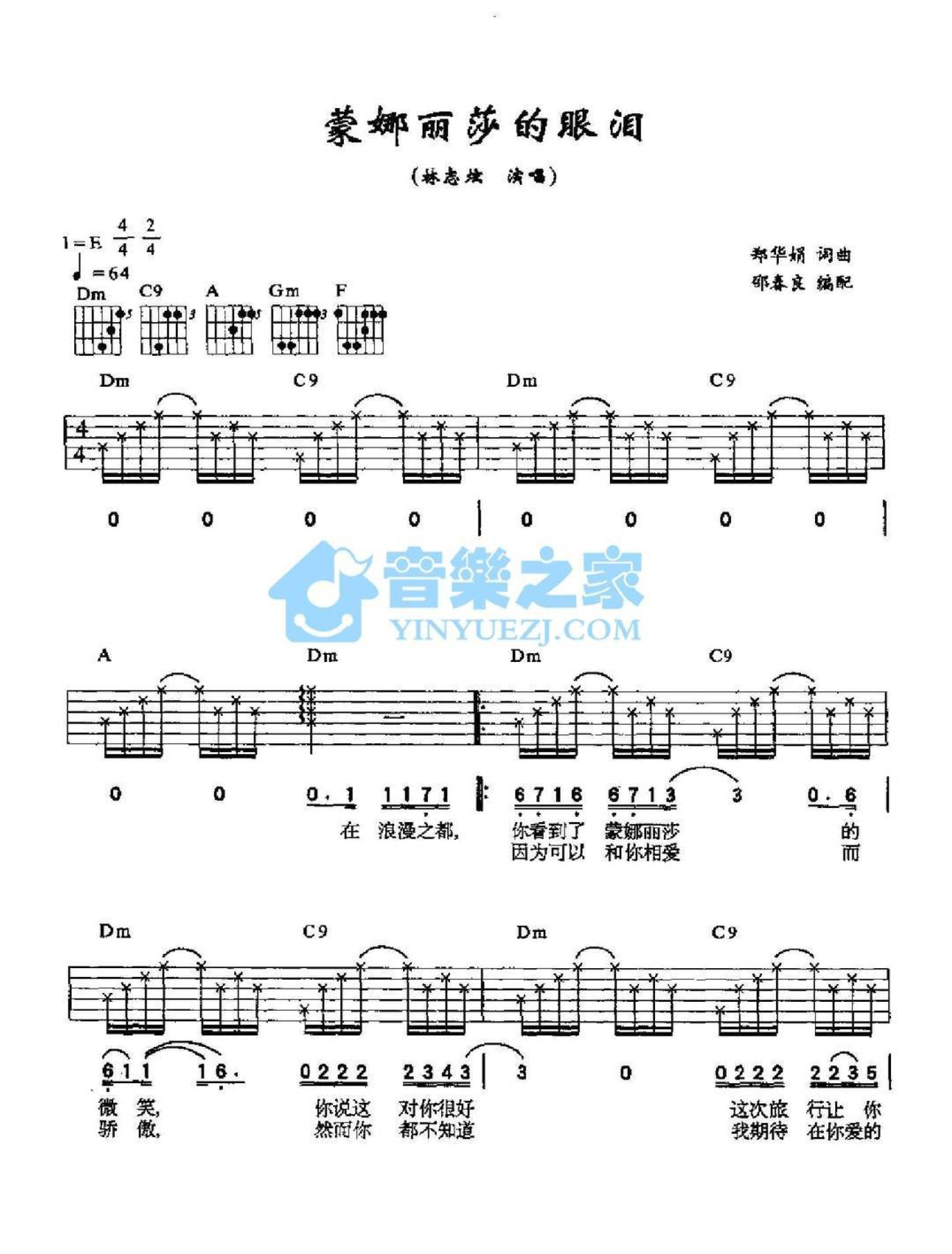 曲谱介绍: E调版林志炫《蒙娜丽莎的眼泪》吉他弹唱六线谱