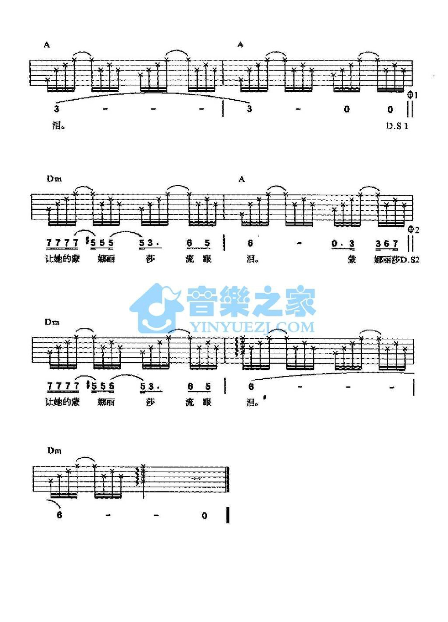 当前位置:琴谱网>吉他弹唱>蒙娜丽莎的眼泪
