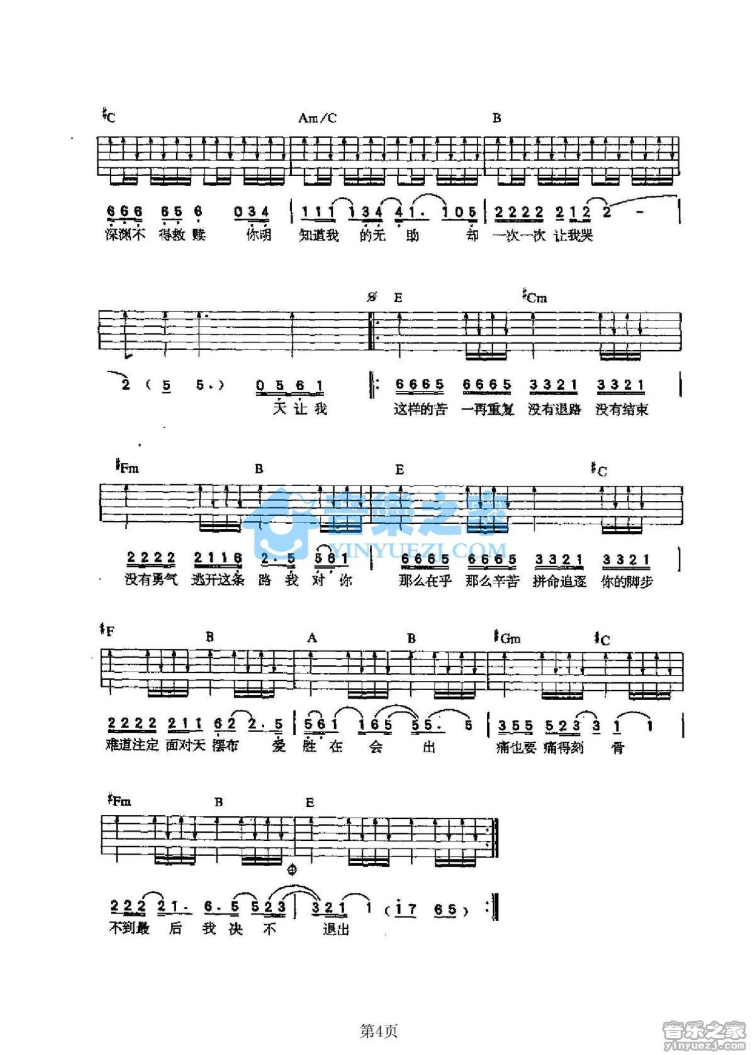 曲谱介绍: E调版李翊君/动力火车《痛》吉他弹唱六线谱