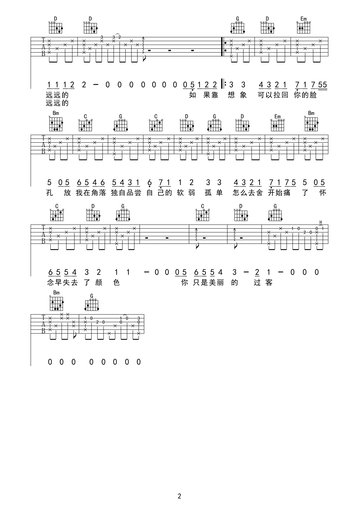 当前位置:琴谱网>吉他弹唱>过客