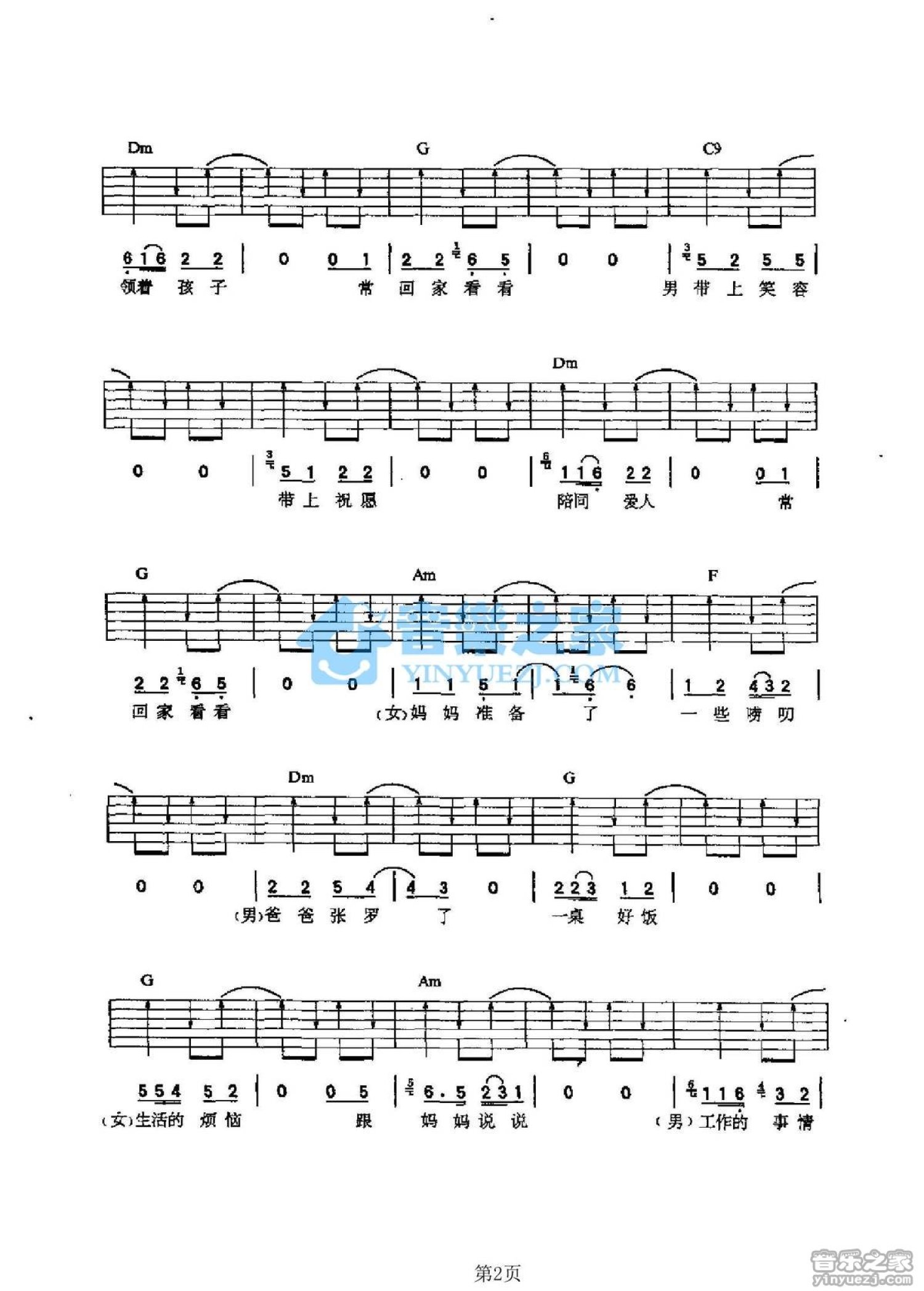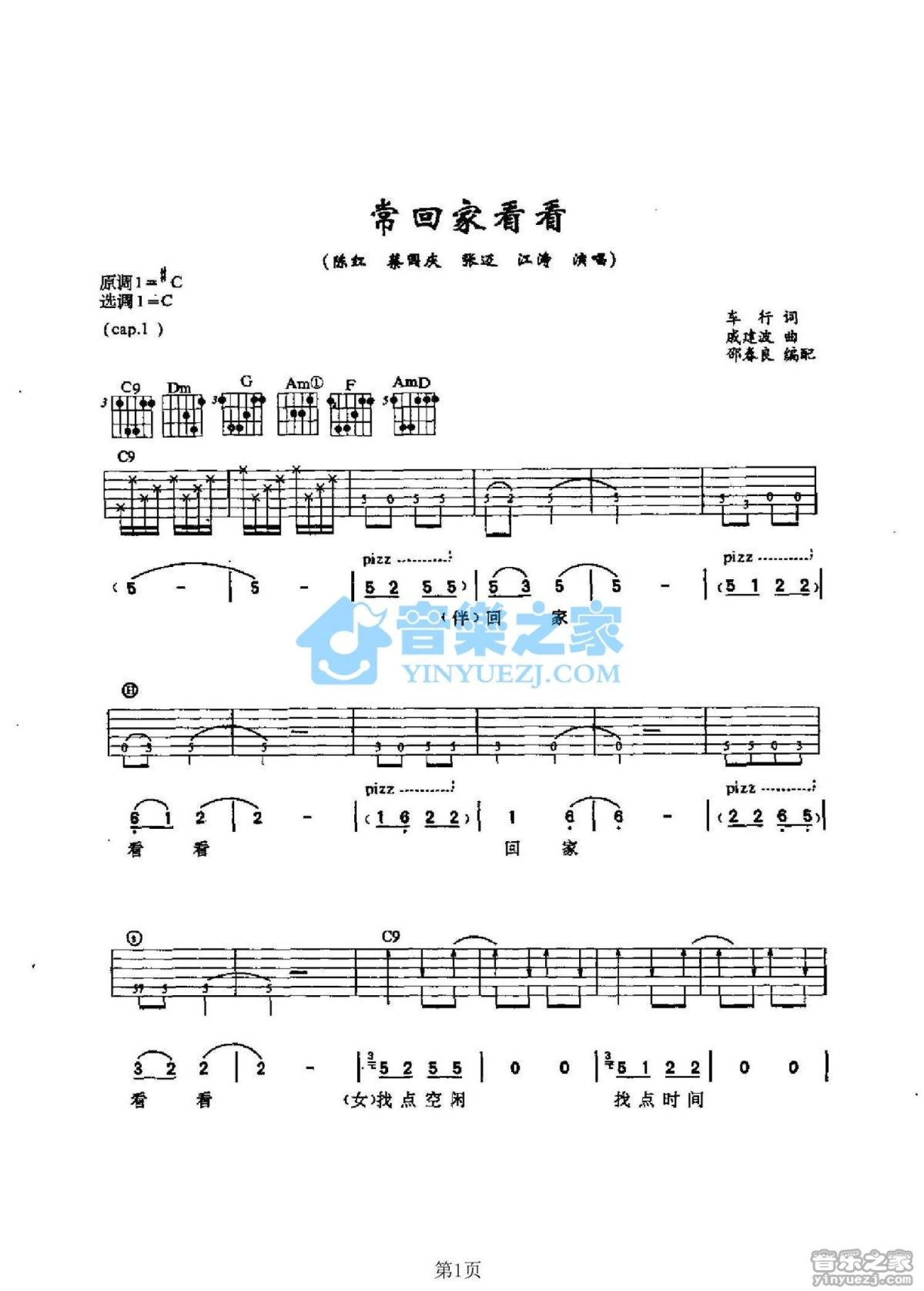 当前位置:琴谱网>吉他弹唱>常回家看看