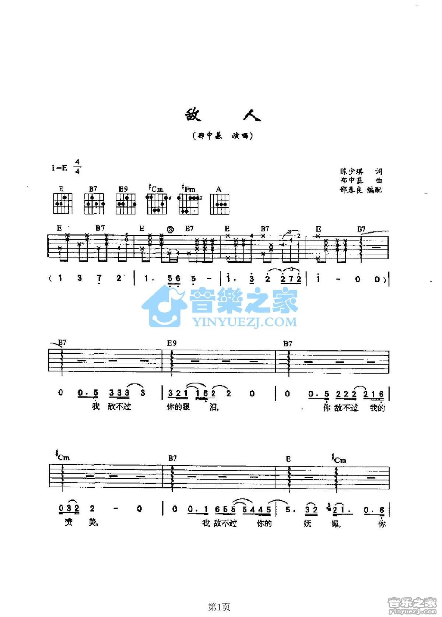 敌人吉他谱 - 郑中基 - E调吉他弹唱谱