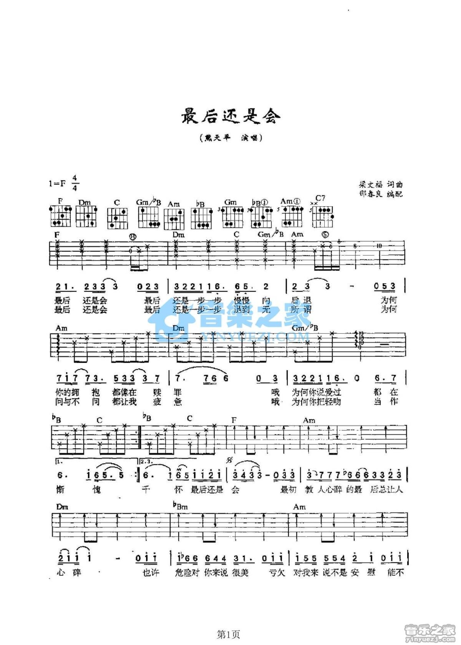 最后还是会吉他谱 - 熊天平 - F调吉他弹唱谱