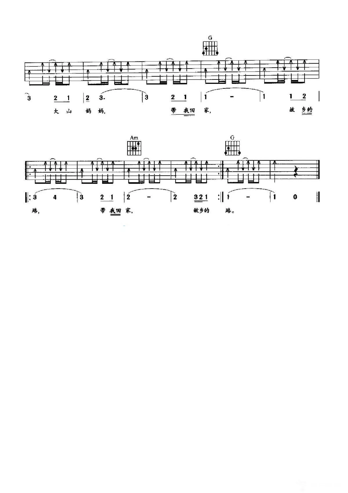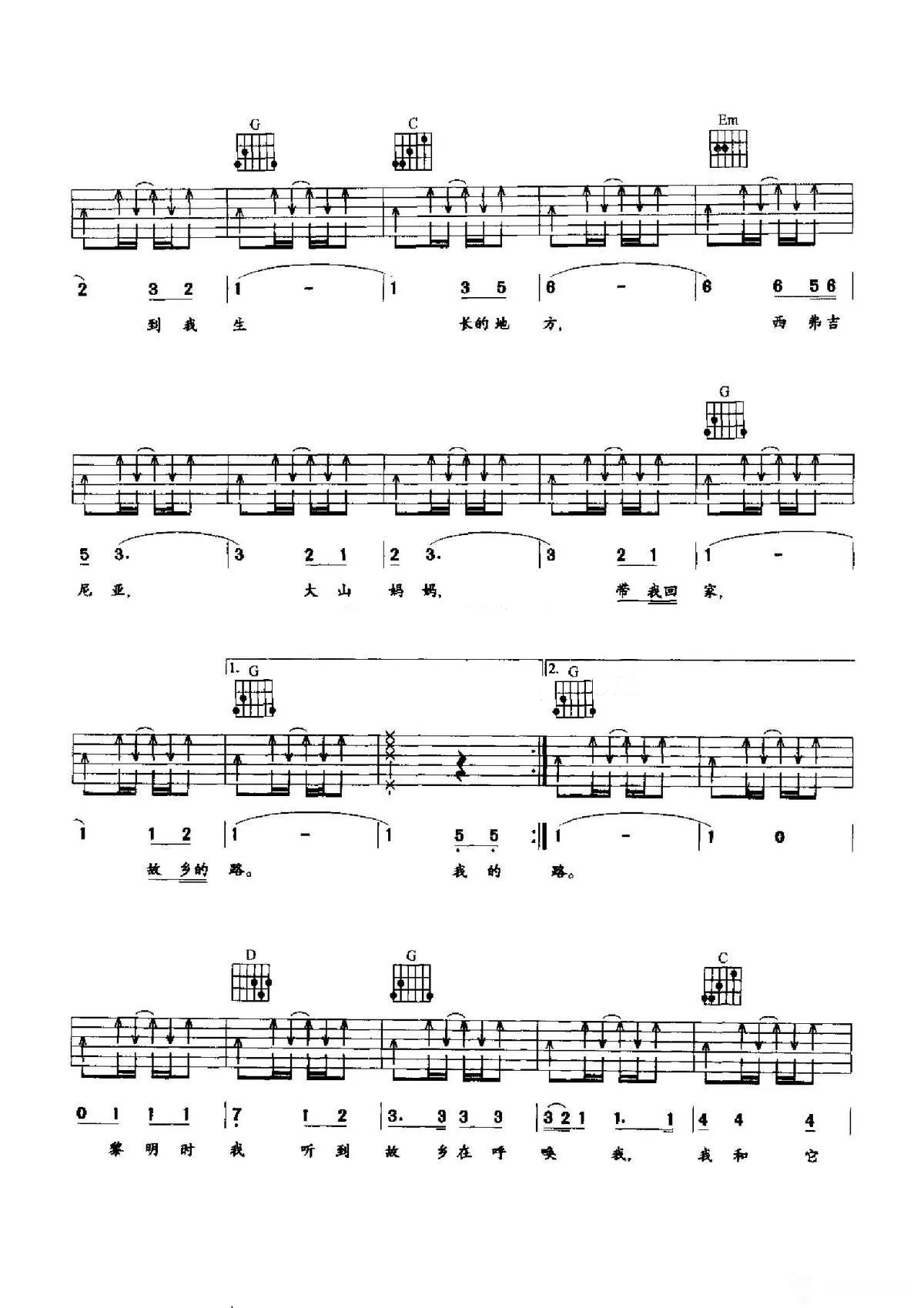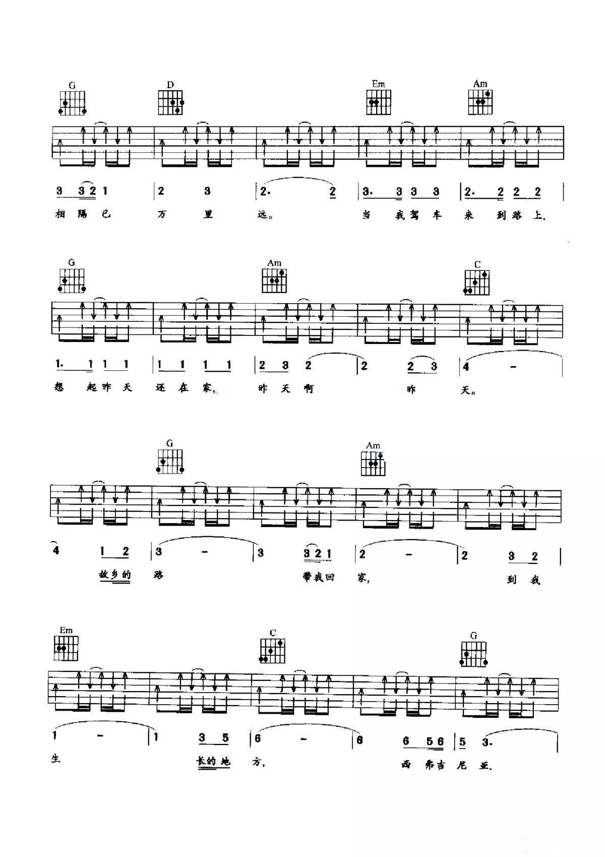 曲谱介绍: G调版 美国乡村歌曲《Country Roads(故乡的路)》吉他弹唱六线谱