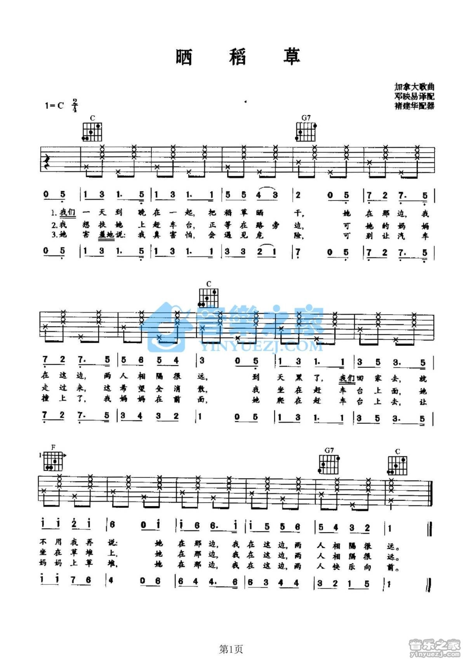 晒稻草吉他谱 - 加拿大歌曲 - C调吉他弹唱谱