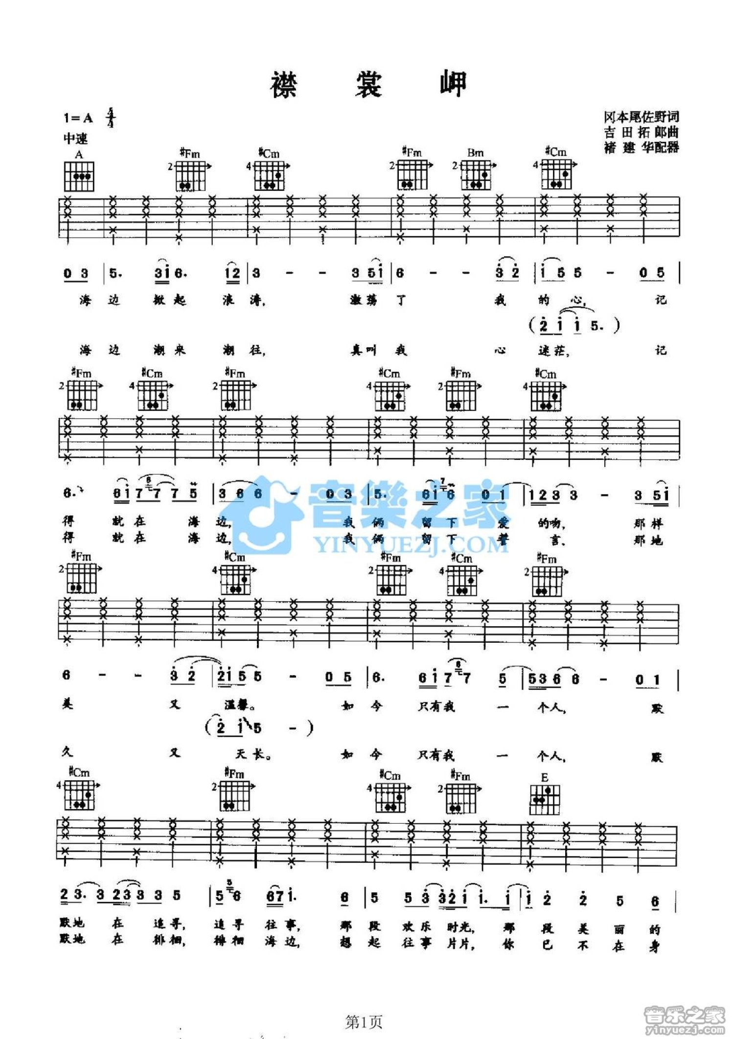 曲谱介绍: A调版邓丽君《襟裳岬》吉他弹唱六线谱