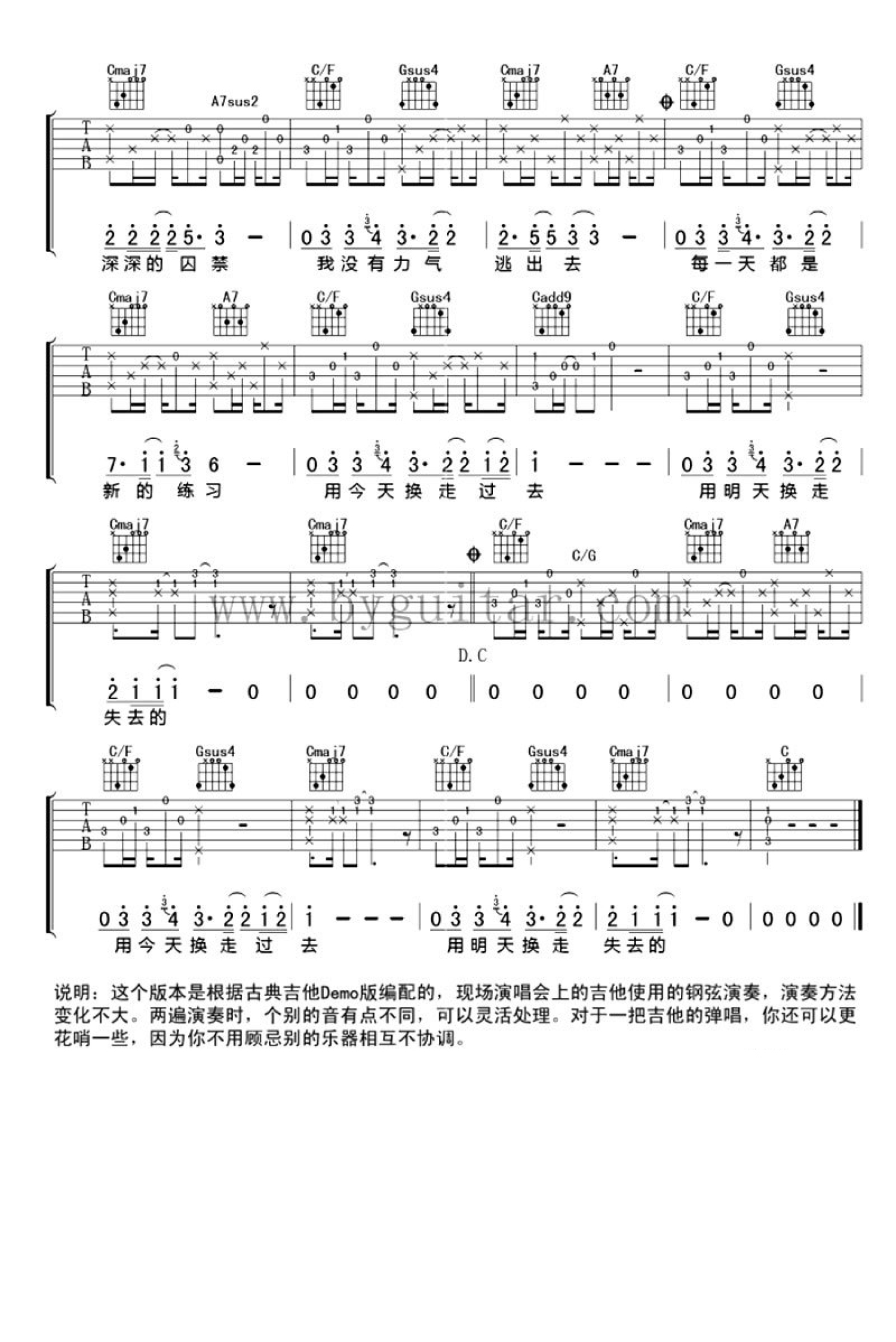 当前位置:琴谱网>吉他弹唱>每天都是一种练习