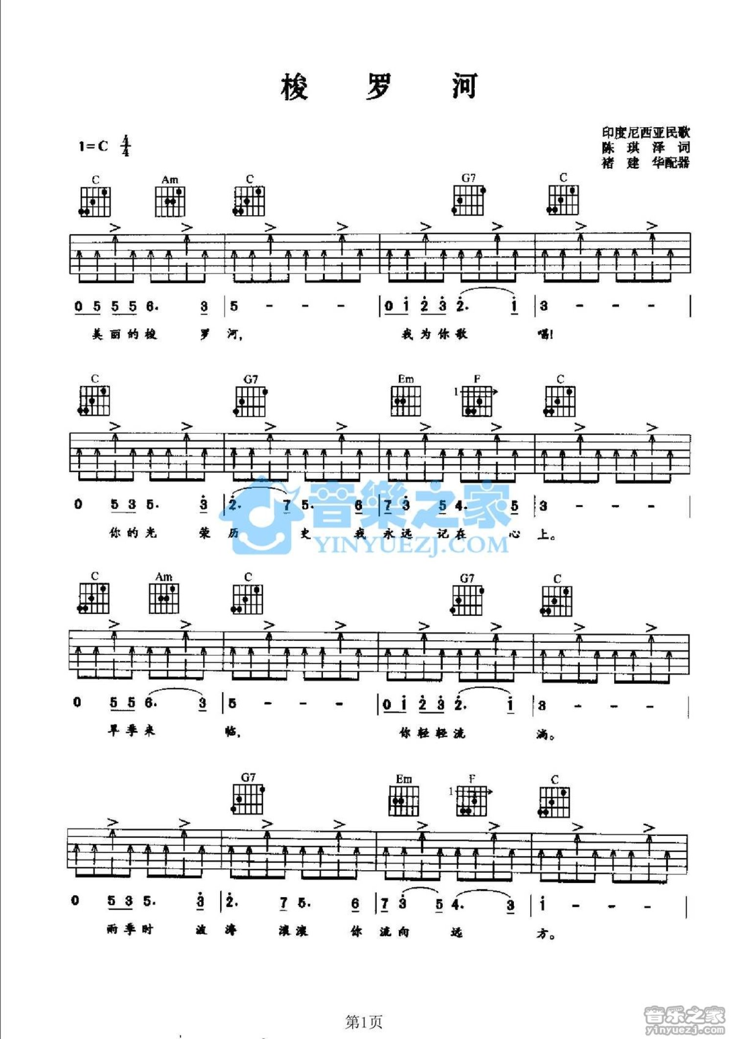 梭罗河吉他谱 - 印尼民歌 - C调吉他弹唱谱