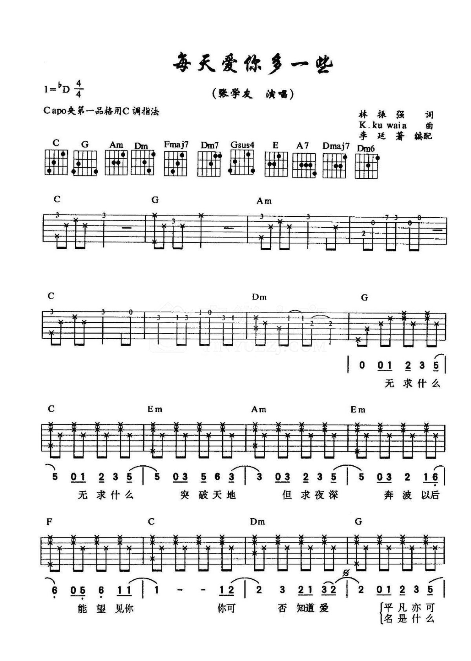 每天爱你多一些吉他谱 - 张学友 - C调吉他弹唱谱