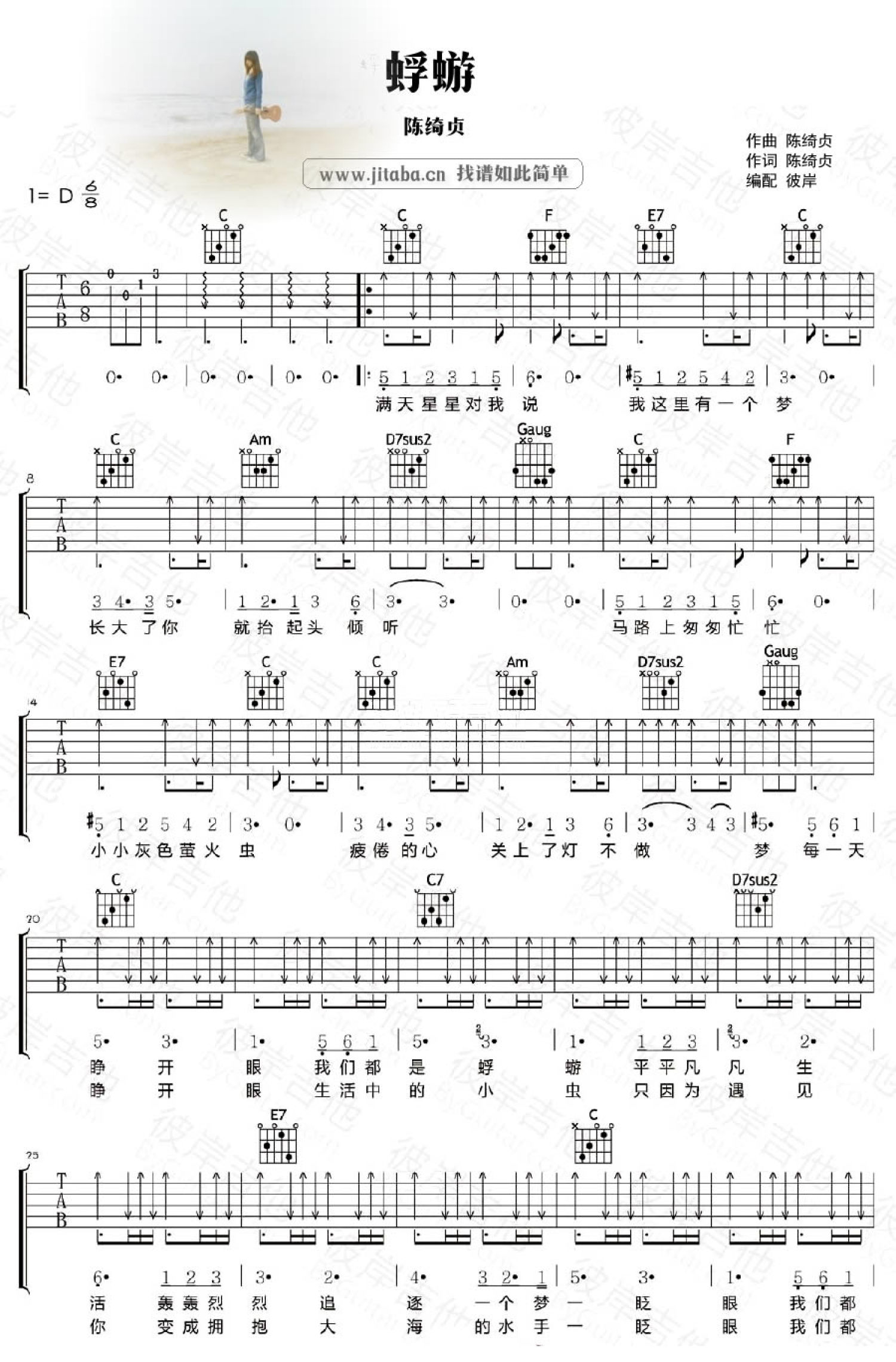 蜉蝣吉他谱 - 陈绮贞 - C调吉他弹唱谱