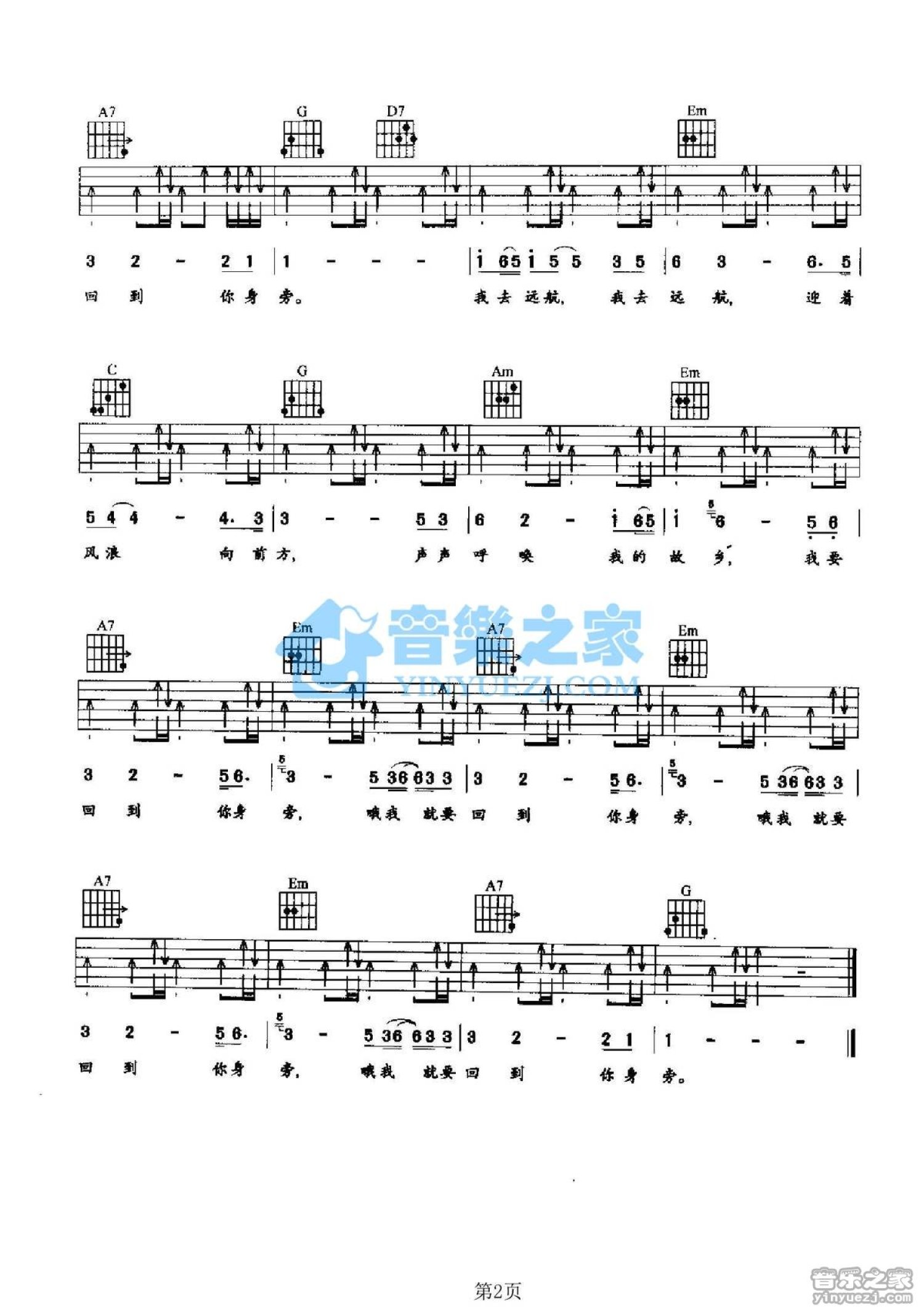 曲谱介绍: G调版澳大利亚民歌《航行》吉他弹唱六线谱