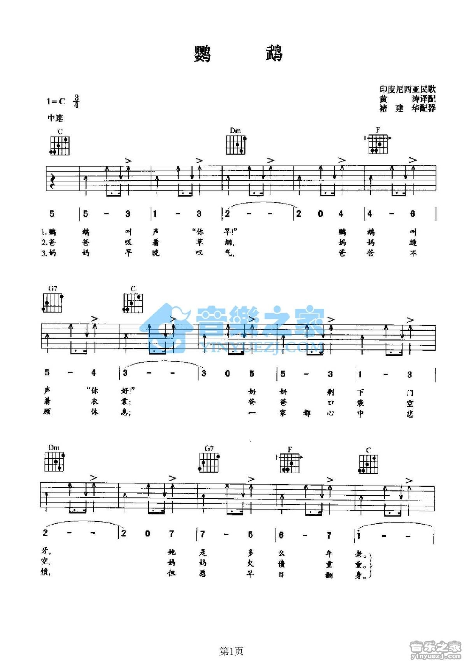 鹦鹉吉他谱 - 印尼民歌 - C调吉他弹唱谱